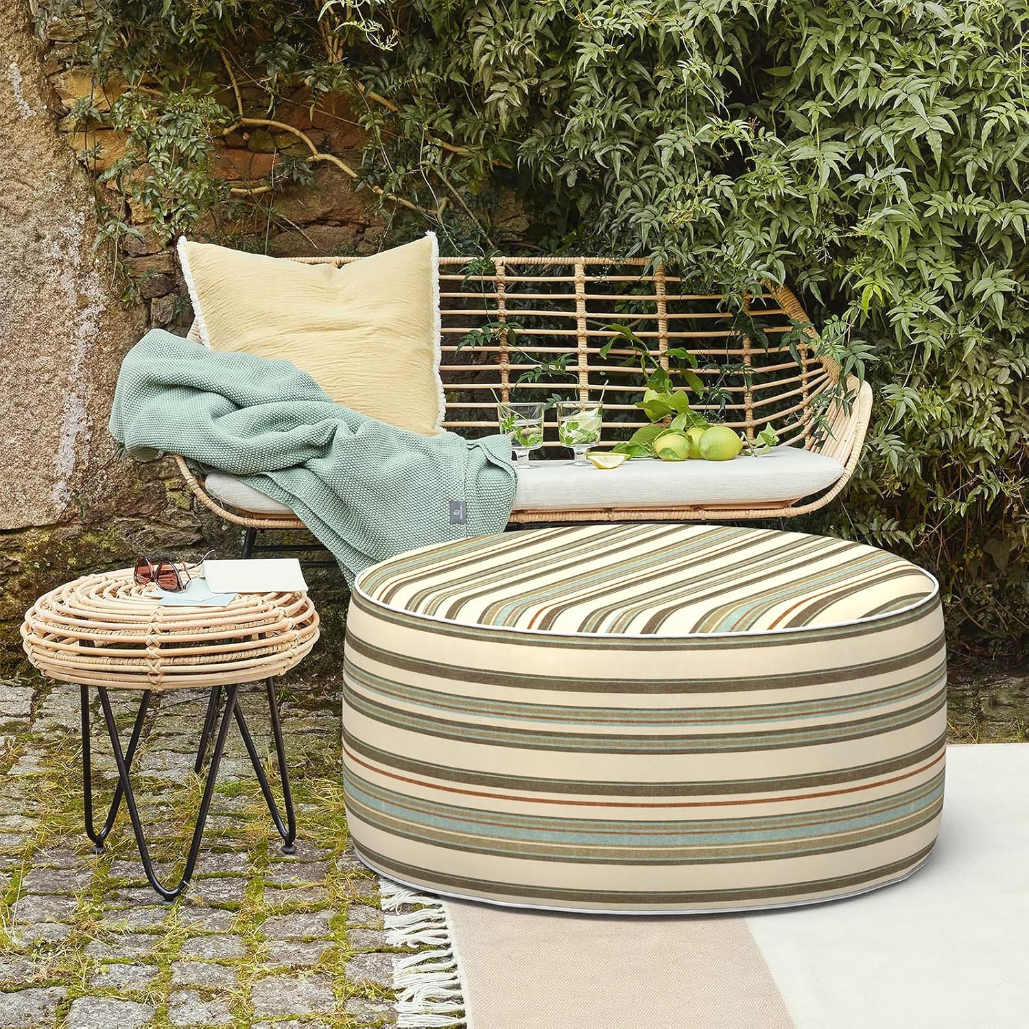 LVTXIII Outdoor Inflatable Ottoman, Fade-Resistant Round Footrest Stool D31”x H14”, Portable Patio Pouf for Garden Camping or Home Use, Stripe Onyx