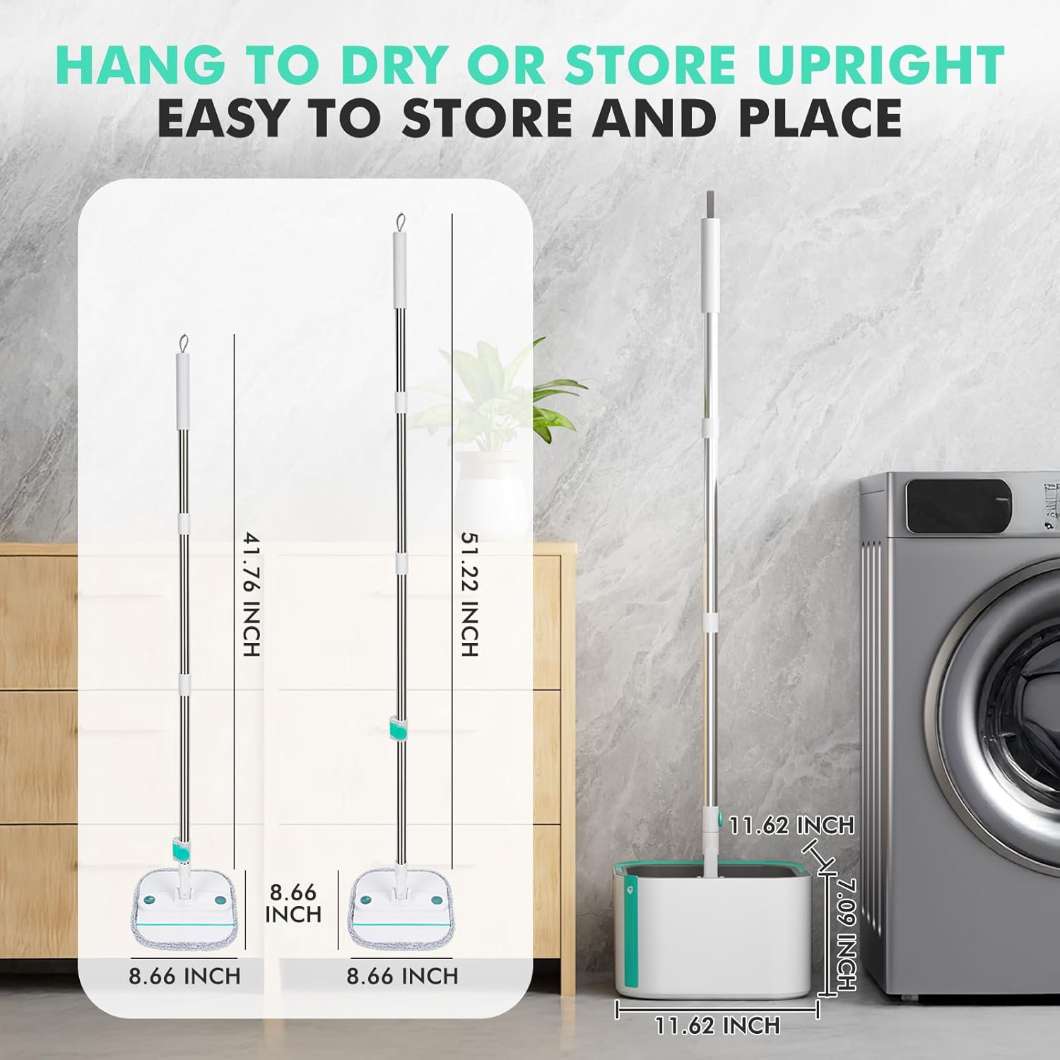 • 【Self-Standing 2.0 Pro Technology】The spin mop features a unique snap-on design that allows it to stand upright independently, making storage convenient. You can easily prop the mop up while answering a phone call or opening the door without any hassle.