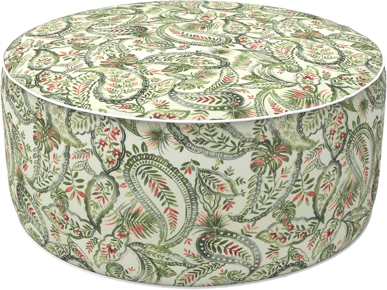LVTXIII Outdoor Inflatable Ottoman, Fade-Resistant Round Footrest Stool D31”x H14”, Portable Patio Pouf for Garden Camping or Home Use, Faylinn Shadow Paisley