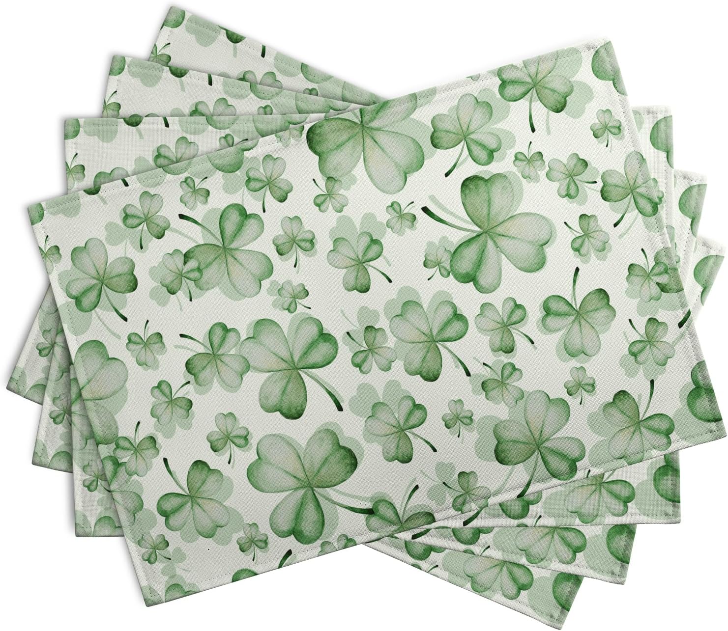 Shamrocks St. Patrick's Day Placemats Set of 4 Watercolor Lucky Clovers St Patrick's Day Table Mats Seasonal Spring Green Leaves Linen Place Mats for Party Kitchen Dining Outdoor Indoor Decor