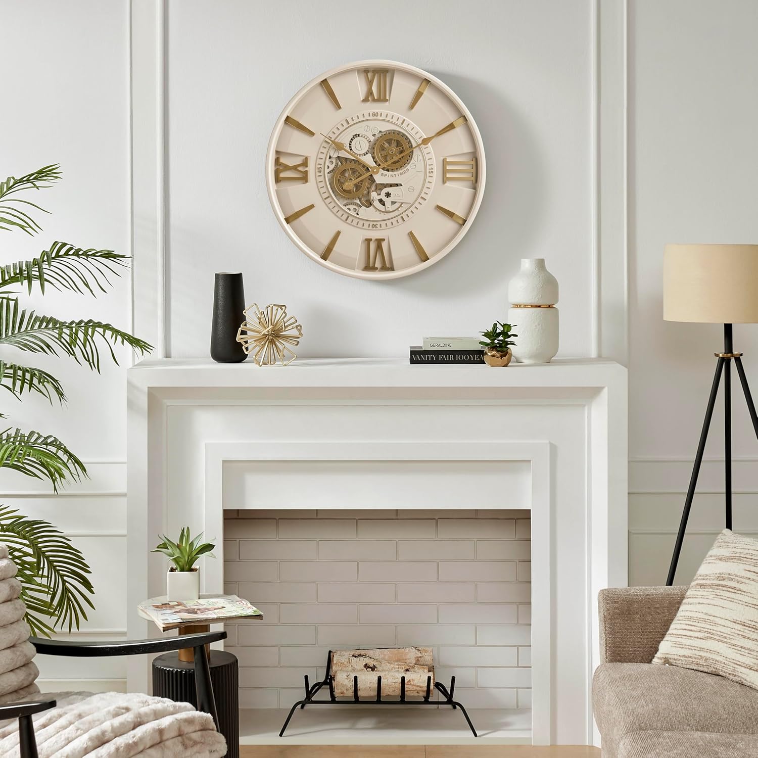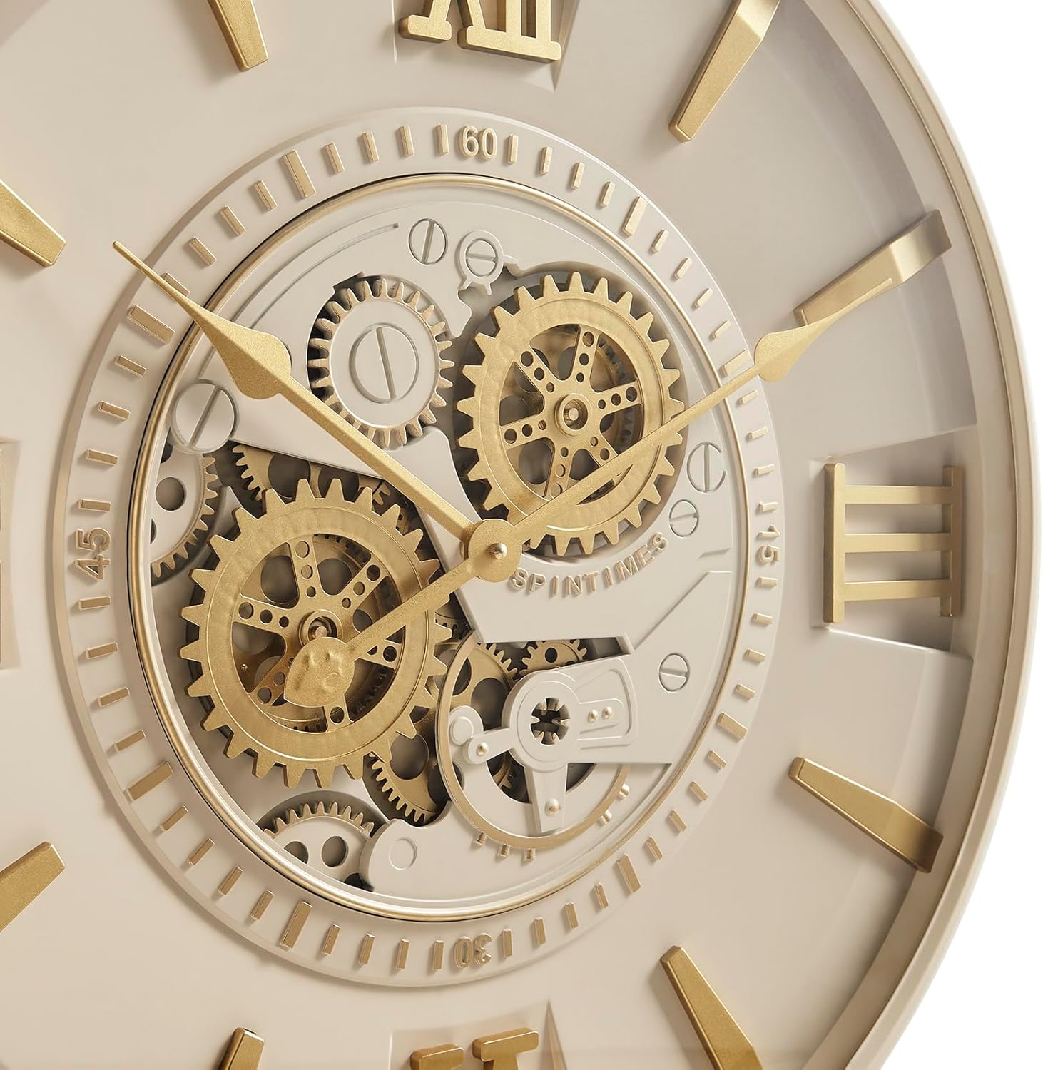CLXEAST Mid Century Minimalist Modern Wall Clocks,24 Inch Wall Clock with Moving Gears, Large Cream Gold Wall Clocks for Living Room Decor,House Warming Gifts New Home