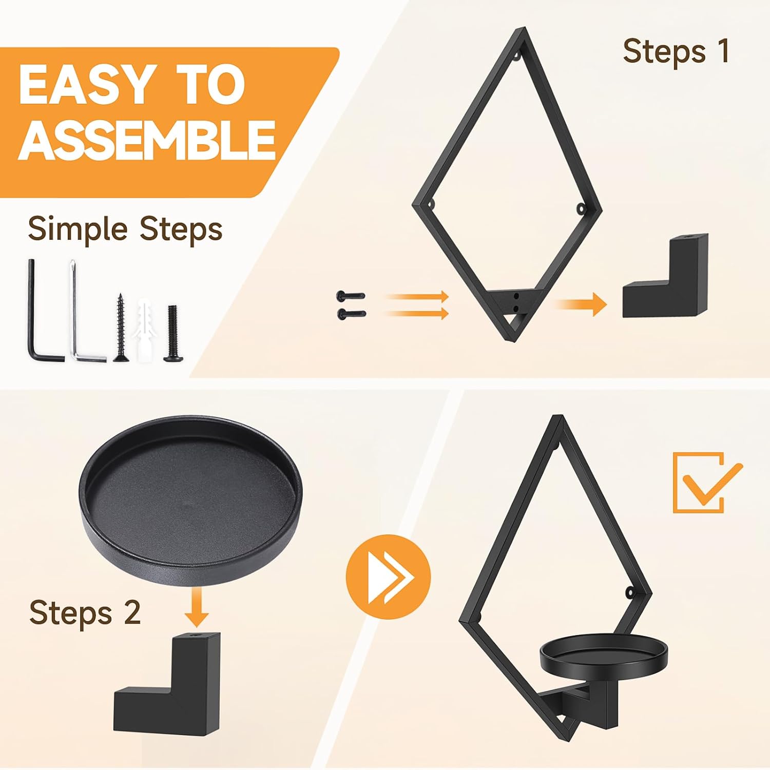 • Modern Design: This wall plant holder features a circular tray with a diamond-shaped frame design. It can hold one flower pot, with a maximum pot size of up to 5.7 inches. The tray has raised edges on the base to prevent the pot from falling. The indoor wall planter is perfect for plant enthusiasts and adds a natural touch to your bedroom, living room, or window