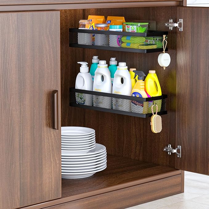 • 【MULTI-PURPOSE&MULTIFUNCTIONAL】The perfect solution for organizing a multitude of every items indoor or outdoor. The cabinet organizer hanging baskets wall mount is Ideal for organizing and storing spice bottles, pantry items, snacks, toiletries, tools, craft supplies,etc. And this metal bin basket free up enough space for your homes, kitchen, living room, bathroom, camper, farmhouse, apartments, college dorm rooms, etc.