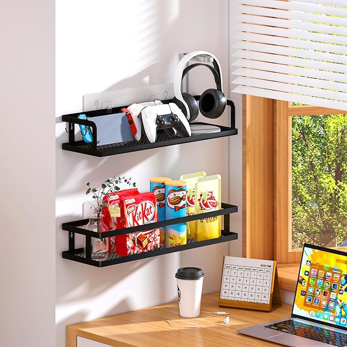 PUSDON Metal Wall Hanging Basket 2 Packs DIY Suitable for Multiple Scenes - Large Black Guardrail