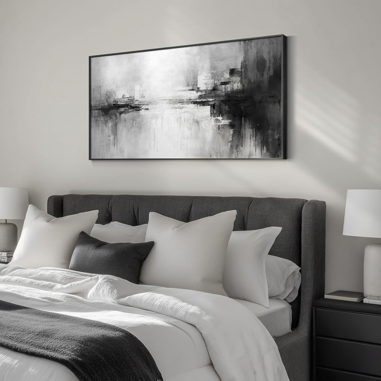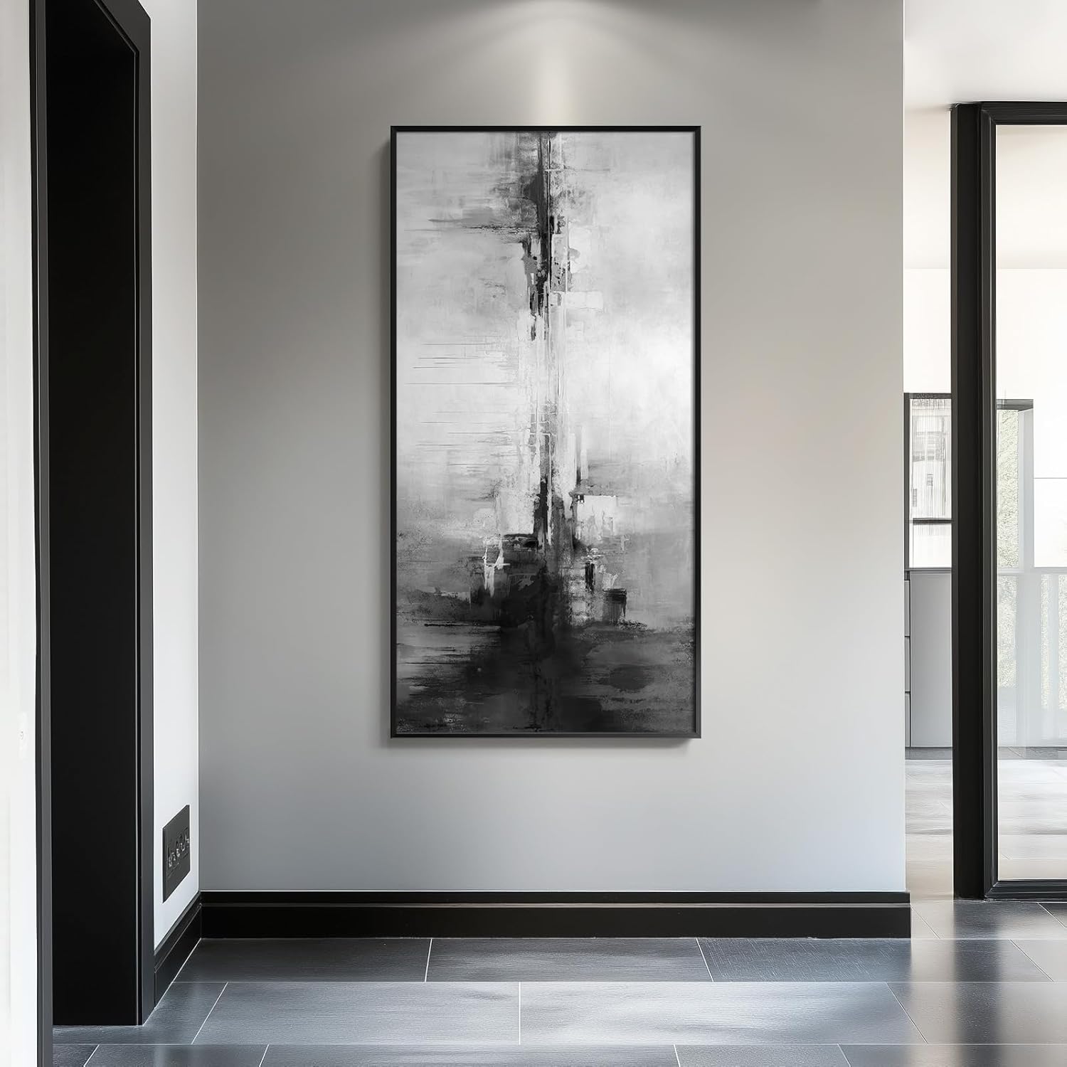 • [Abstract Wall Art]: This large abstract wall art uses a minimalist black and white color scheme to create a modern and simple feel. Despite the simplicity of the overall tone, the rich layers in the picture give the work a unique visual appeal. The classic black and white tones convey elegance and tranquility and are suitable for wall decoration in living room, hallway, stairwell, dining room, bedroom, study room, kitchen, office and bathroom to add a modern and artistic atmosphere to any environment