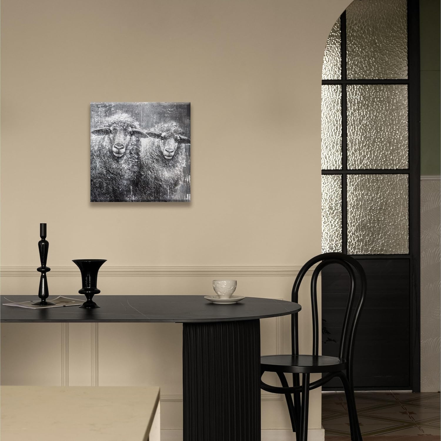TAIJXAGSG Animal Cancas Wall Art Decor Farmhouse Sheep Picture Paintings Decor Vintage Rustic Painting Cute Sheep Artwork For Kitchen Living Room 13'' X 13'' wall hanging decor