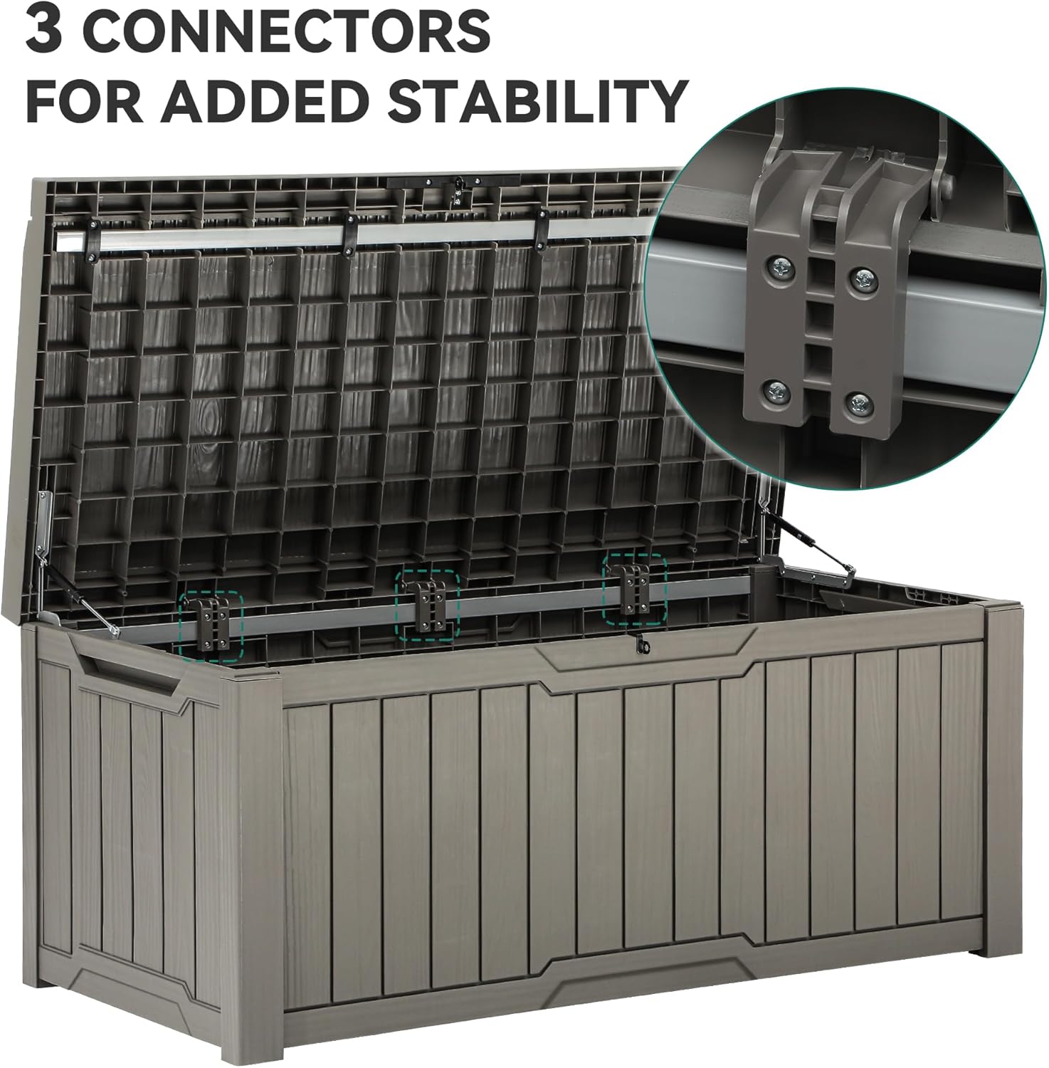 • Elegant & Practical: With wood-like pattern, our outdoor cushion storage complements any decor; Can serve as an outdoor storage bench table or seat with 350 lbs weight capacity, offering both elegance and practicality