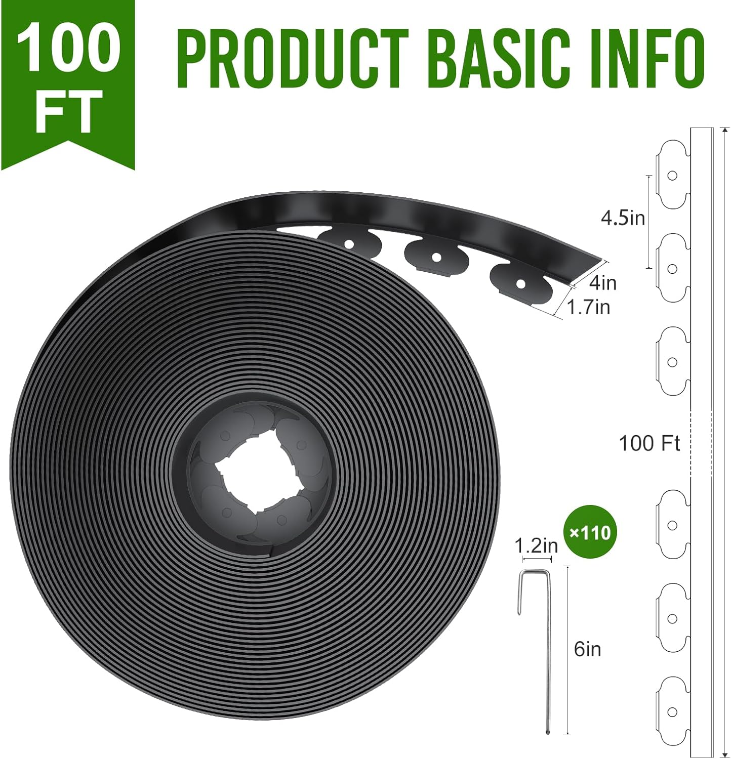 • What You Get: Landscape edging kit included a 100ft edging coil 4 inch tall, 110Pcs metal staples. More staples help you design more professional landscape