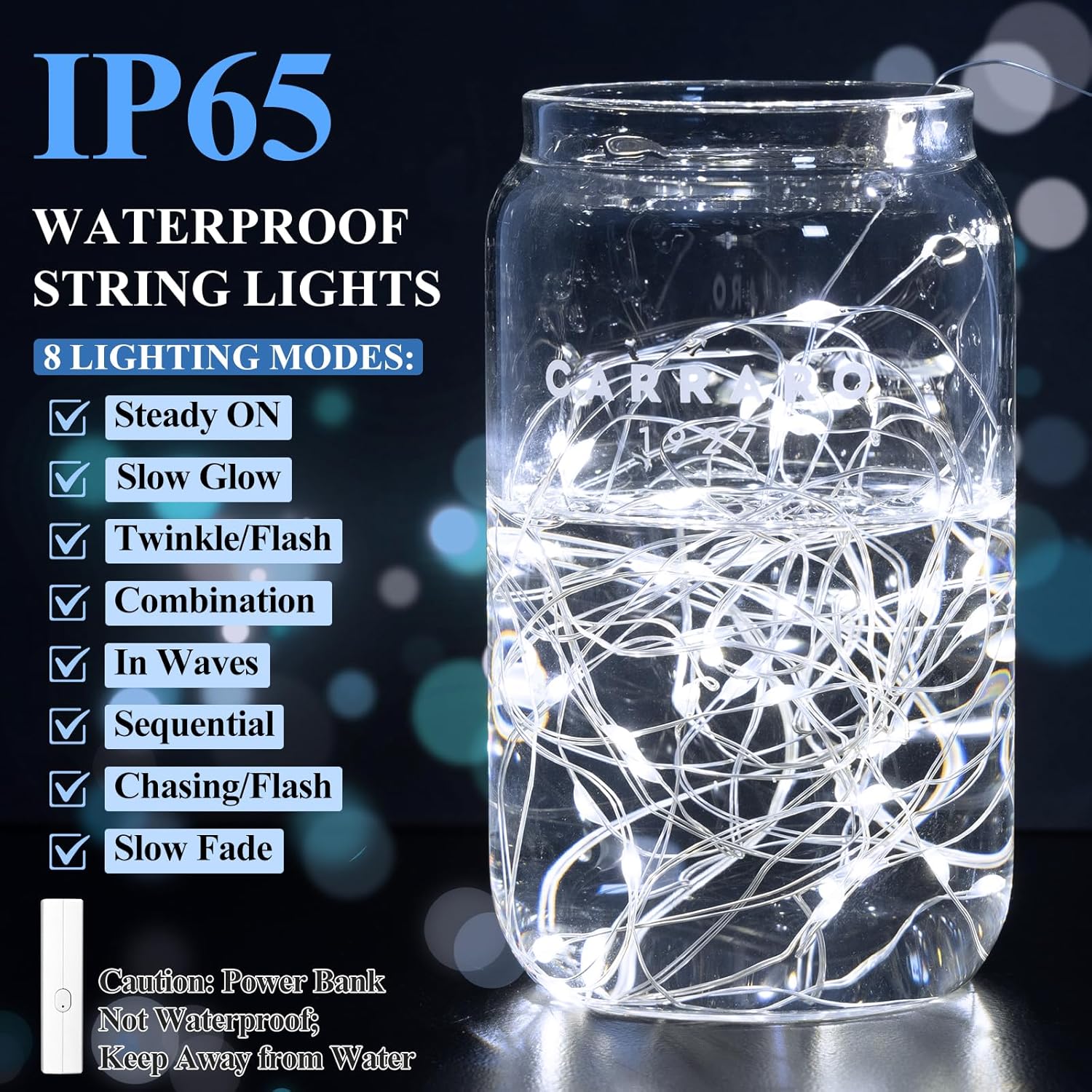 • Tangle-Free & Water-Resistant: Say goodbye to messy wires! These IP65-rated mini LED fairy lights battery operated feature tangle-free reinforced wiring that withstands humidity, perfect for mason jars and indoor plants. Built to last, they outshine ordinary battery string lights. Note: the included power bank is not waterproof—keep it dry for safe use