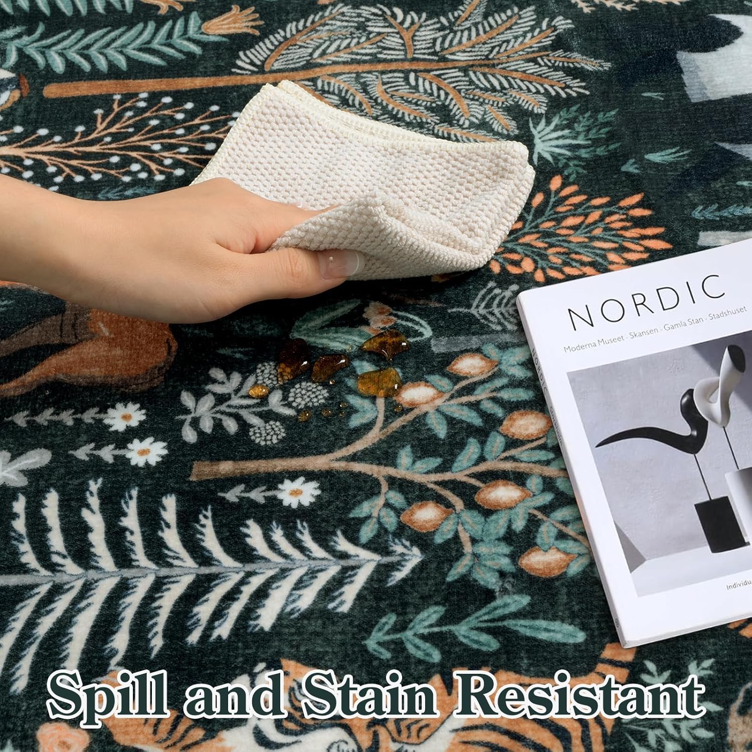 • Non-Slip & Ultra-Thin: The skid-resistant TPE backing can keep the rugs in place effectively, suitable for households with children, pets, or messy hobbies. This rug is ultra-thin, allowing it to be easily placed under furniture