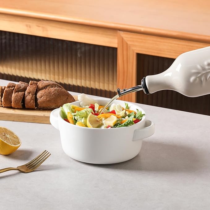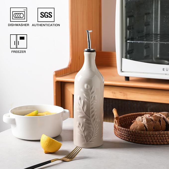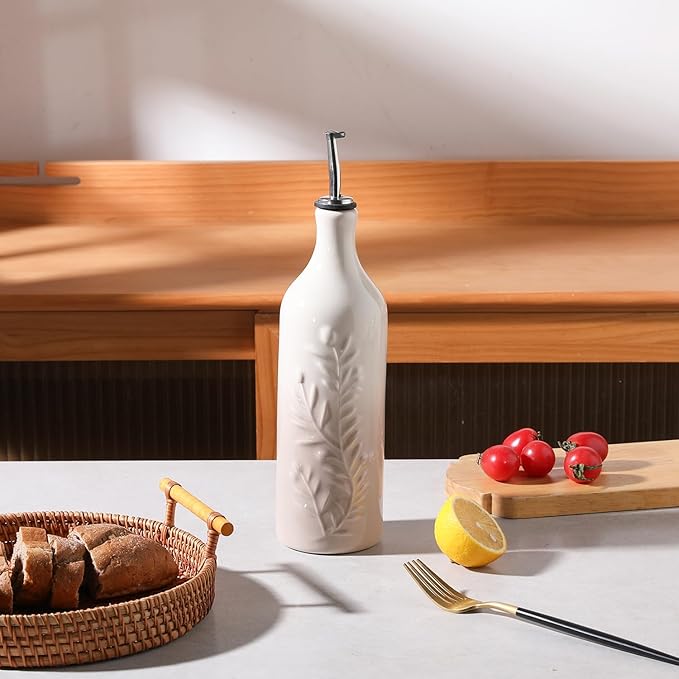 • Durable and Precise Pouring Control - The olive oil bottle fired at high temperatures, to form a smooth glazed surface, strength and durability. The carefully designed spout that allows for easy pouring without any messy drips or spills.