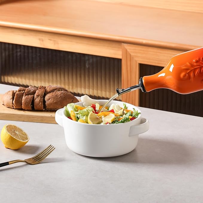• Durable and Precise Pouring Control - The olive oil bottle fired at high temperatures, to form a smooth glazed surface, strength and durability. The carefully designed spout that allows for easy pouring without any messy drips or spills.