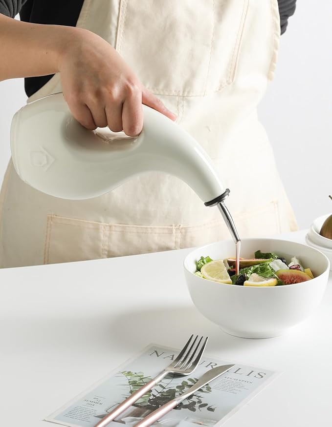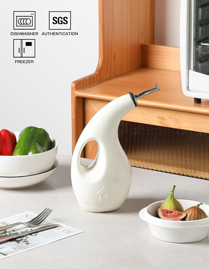 • Leak Proof & Keep Liquid Fresh - The bottle is made of durable ceramic that creates a smooth glaze. And the opaque porcelain bottle protects the oil from light and makes it last longer.
