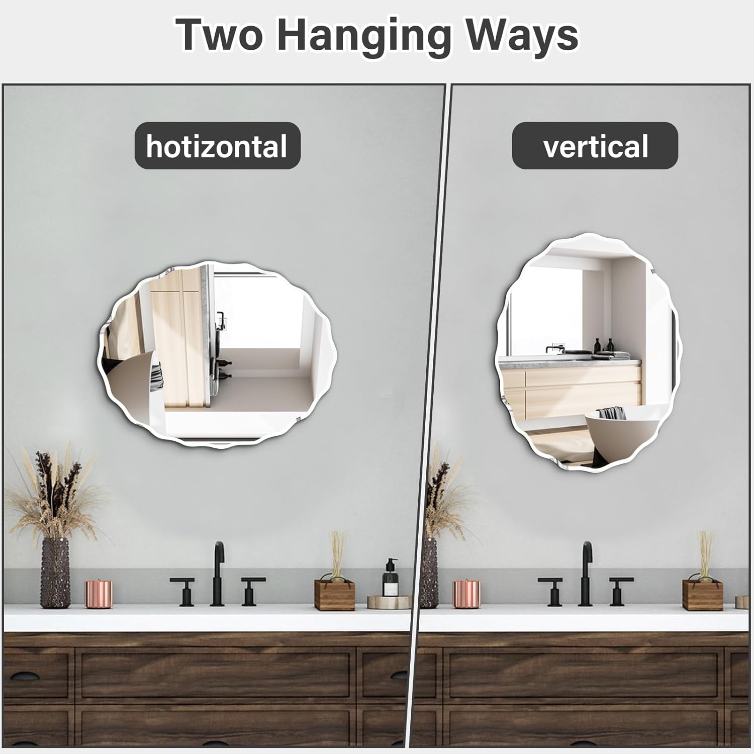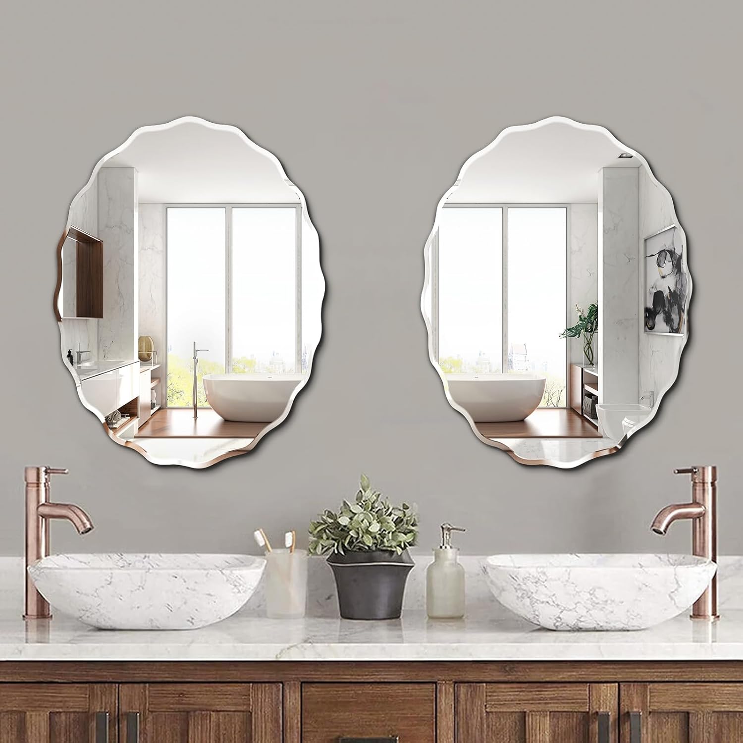 • Stylish Design: Frameless design combines with beveled edge gives the oval wall mirror a sleek and contemporary look. Polished edges ensure safety and a refined appearance. It's not only a practical reflection tool, but also an ideal wall decor mirror, adds a touch of sophistication to any room decor.