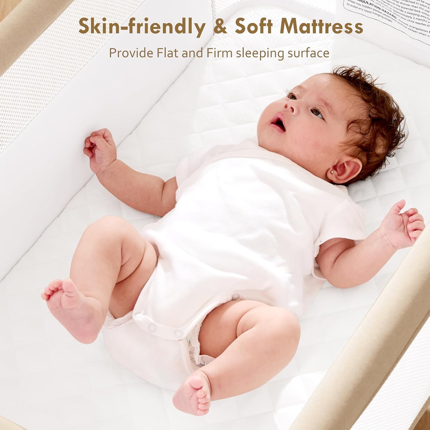 • Cozy Sleep with a Washable Mattress - This baby bassinet comes with a soft, skin-friendly mattress that is fully removable and washable, making it easy to keep your baby’s sleeping environment clean and hygienic. Protect your baby’s delicate skin while ensuring a cozy, restful sleep. Keep your bassinet fresh and ready in just a few simple steps