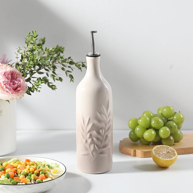 Sweejar Ceramic Olive Oil Dispenser Bottle, 24 Oz Relief Opaque Oil Cruet Protects To Reduce Oxidation, Suitable for Storage Soy Sauce, Coffee Syrup, Liquids, Set of 1 (Gradient FogGray)
