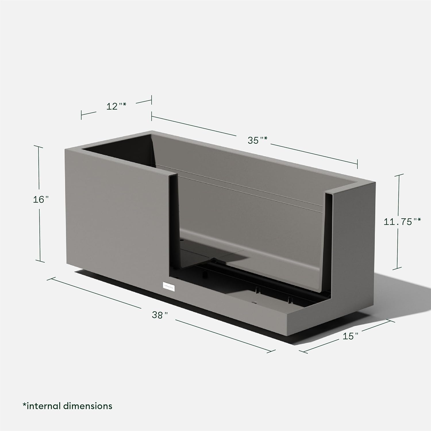 • DIMENSIONS & DETAILS: This double-walled planter’s exterior dimensions measure 16” in Height, 15” in Width, 38” in Length, and the interior dimensions measure 11.75” in Height, 12” in Width, 35” in Length. It comes fully assembled for easy use