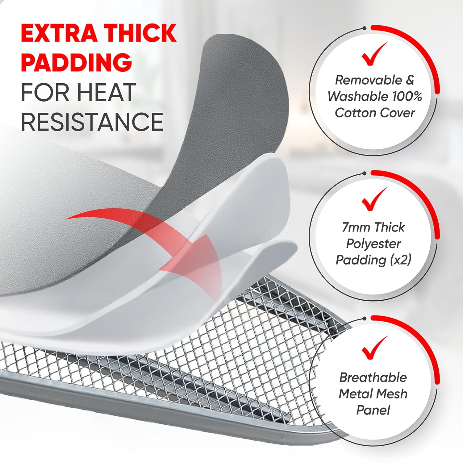 • 3-Layer Iron Board Cover: A waterproof, ultra-smooth top layer over two layers of soft, heat-absorbing padding ensures effortless glide and faster results on your full size ironing board