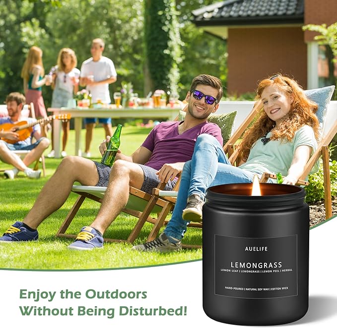 Lemongrass Candle | Lemon Grass Scented Candles for Outdoor & Indoor, Natural Fragrance for Garden Yard, Candle Gifts for Women Men- 7oz Soy Candles for Home Scented, 50Hours Long Lasting Burn