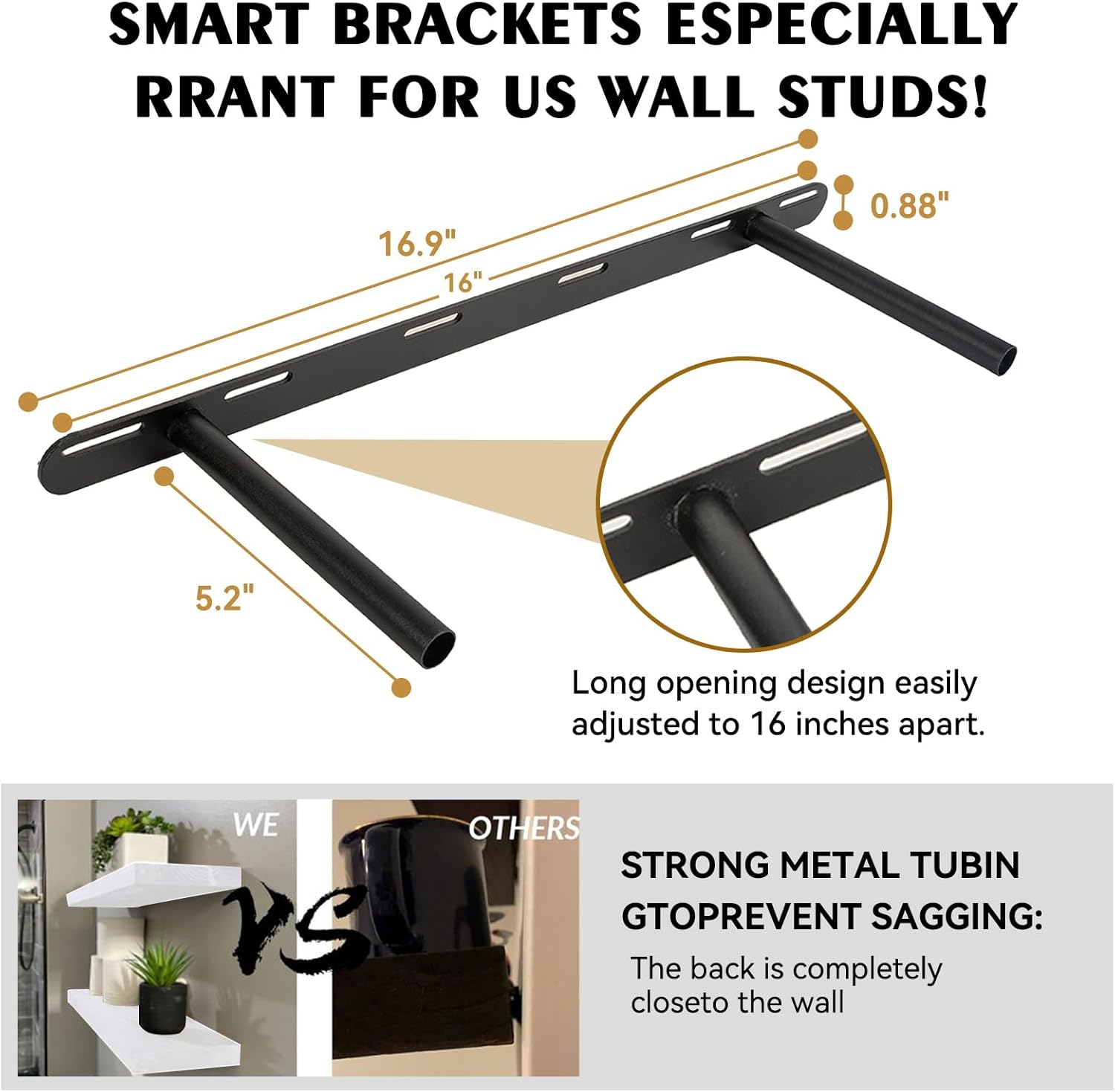 • EASY TO INSTALL: These floating shelves come with stainless steel galvanized invisible brackets, toggle bolts for drywall, and simple instructions to help you install them. These wall shelves are easy to assemble, requiring only two boards and the necessary screws and hardware. We also provide detailed instructions for quick and easy assembly