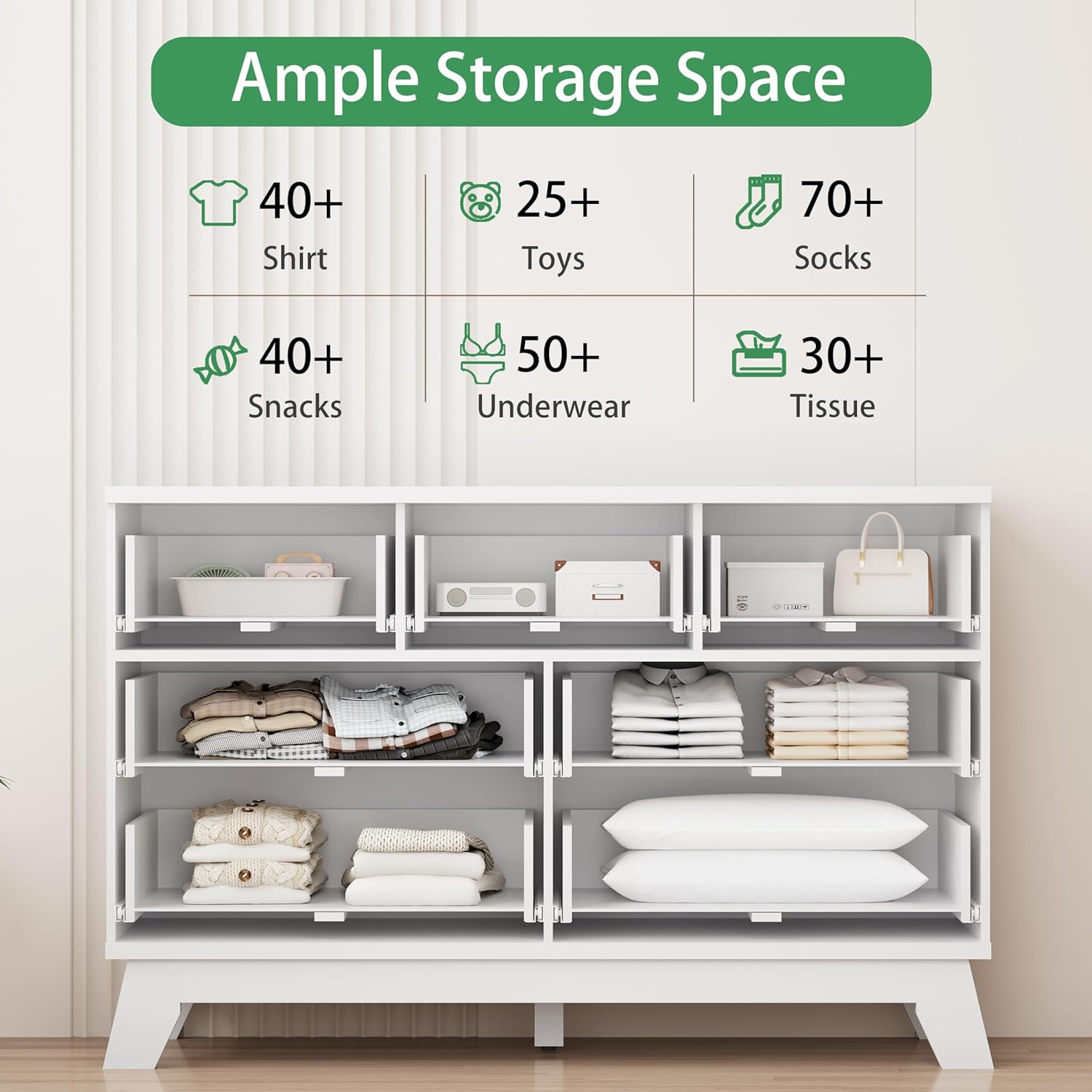 • 【Stability & Safety】The white/black/natural oak dresser is equipped with an anti-tipping device, which can be fixed on the wall to prevent accidents. Each drawer contains a wide metal handle and built-in slide rail, easy to push and pull. Besides, the sturdy base provides this dresser with drawers a strong support and the middle feet can be adjustable to keep balance on uneven floors
