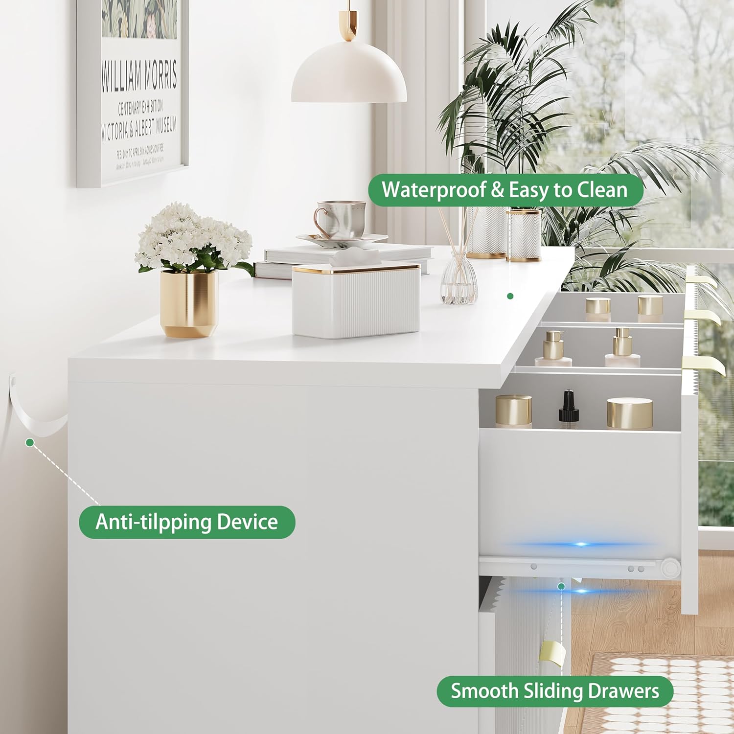 • 【Solid Material & Study Construction】The dressers & chests of drawers are constructed from optimal MDF, P2 engineered wood and coated metal handle which not only has exquisite texture, but also ensure long-term use and scratch resistant. Each drawer holds up to 35 lbs or 15 lbs and the thickened tabletop can support up to 150 lbs. For easy cleaning, just wipe with damp cloth and get it air-dried