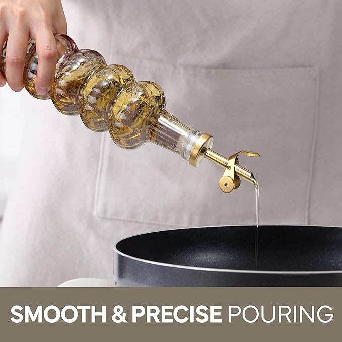 • Perfect Amount - Each bottle holds 500ml or 17oz of a variety of oils and vinegars. From your favorite EVOO, avocado oil, balsamic vinegar dispenser and more.
