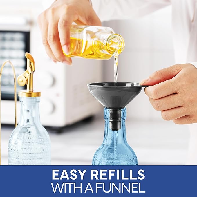 • Perfect Amount - Each bottle holds 500ml or 17oz of a variety of oils and vinegars. From your favorite EVOO, avocado oil, balsamic vinegar dispenser and more.