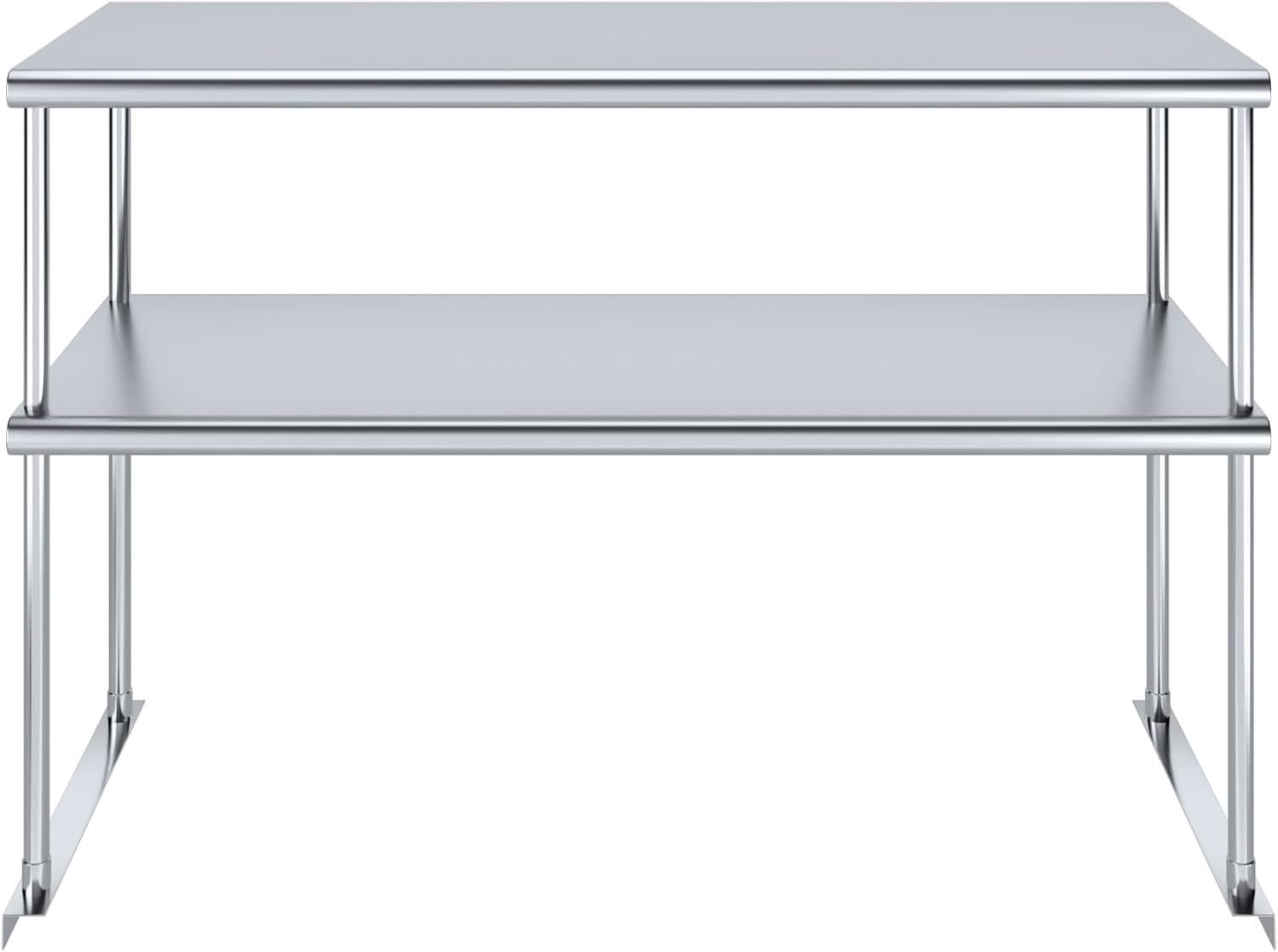 • 18 in. x 48 in. x 32 in. double-tier overshelf. Each tier holds up to 295 Lbs, providing robust support for heavy kitchen essentials.