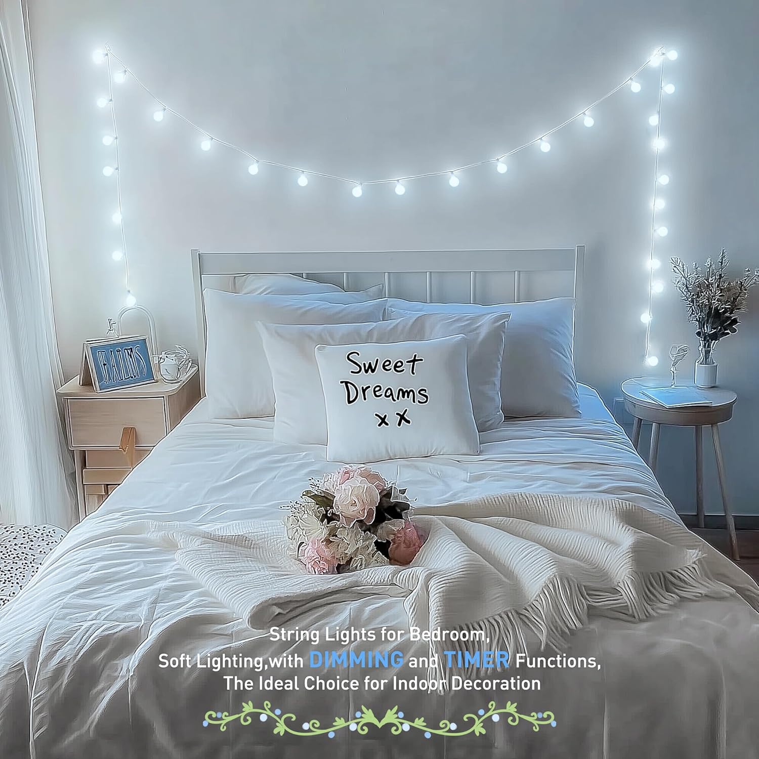 • 【Globe String Lights】The white Led string lights come with frosted globes can create a soft, cosy light to take care of your eyes. So the lighting effect of the frosted ball is irreplaceable by other LED string lights. The cute string lights indoor provide a fun feel for room aesthetic to the bedroom, dorm, classroom, living room. The globe around the lights are shatterproof, it create a unique relaxing and soothing indoor atmosphere, and enhances the durability of the string lights