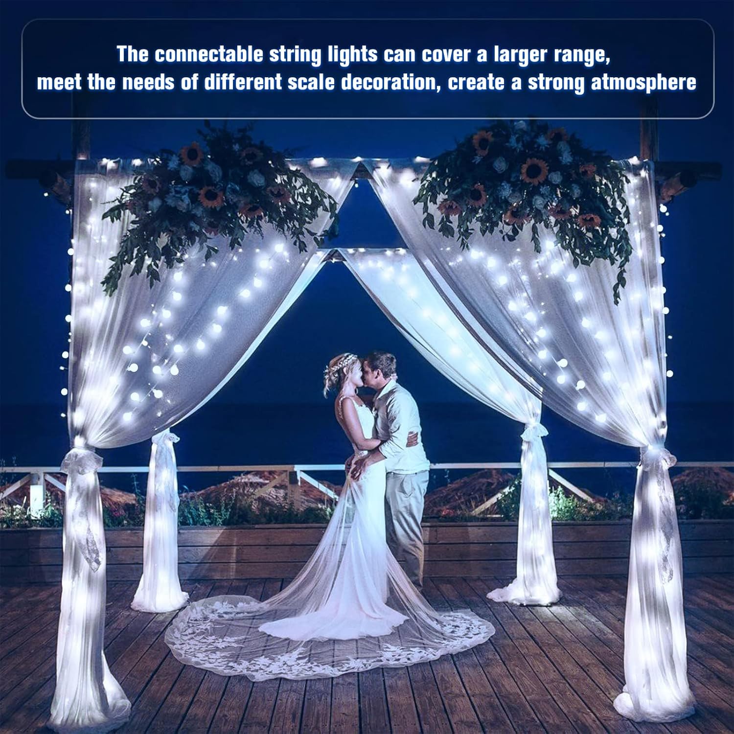 • Ultra Long globe string lights: Now offers the ultra length fairy lights 165ft for outdoor/indoor decoration, The length of 200 LED indoor and outdoor decorations lights is 116ft (100ft String Lights,16ft Lead Wire). Also the decorative string lights are connectable, can meet your more decoration needs, presenting more beautiful lighting displays. Super long globe string lights to decorate your home,classroom,dorm,bistro,cafe,shopping mall,wedding,party,yard,garden,Christmas decorations, etc