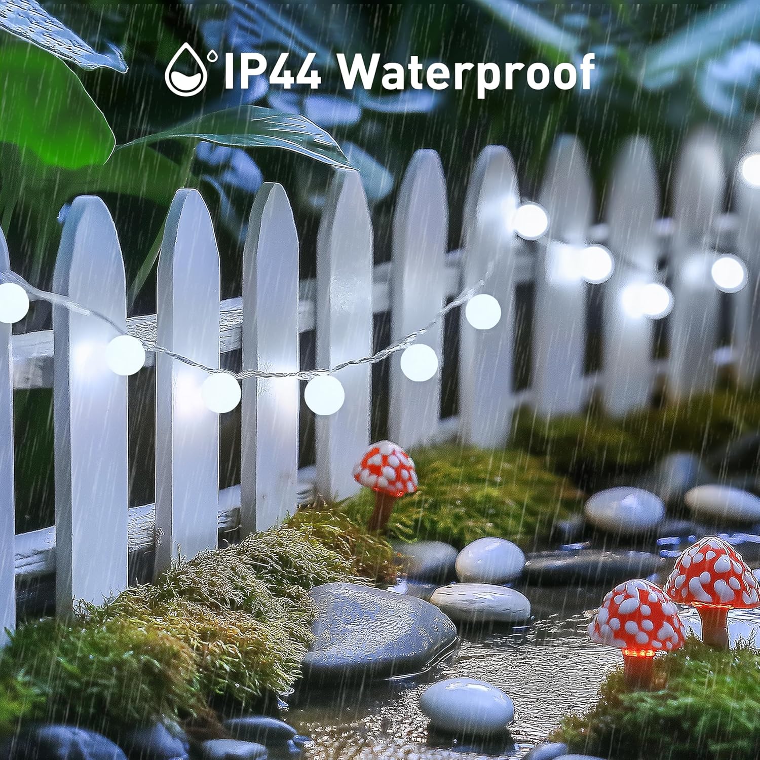 • UL Certified &Waterproof Design: The white string lights plug in have UL certification, with low voltage, it's safe to touch and put it around your body. The globe string lights outdoor is IP44 waterproof, It's perfect for home decoration without getting damaged, including heavy rain and snowy. But please note that the plug needs to be protected from water. The globe string lights for outside are widely used for Christmas decor, Holiday decor, Party decor, Patio decor, Camping decor