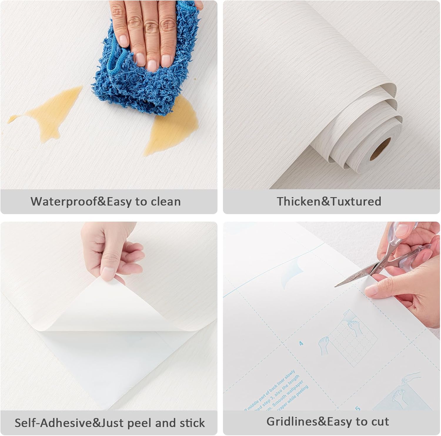 • FEATURES--Vinyl/pvc material. Thicker than normal wallpaper, full of real texture,self adhesive, easy to apply. Waterproof . Indoor use, ideal for most smooth flat surfaces such as bedroom,living room,cabinets,furniture,etc.