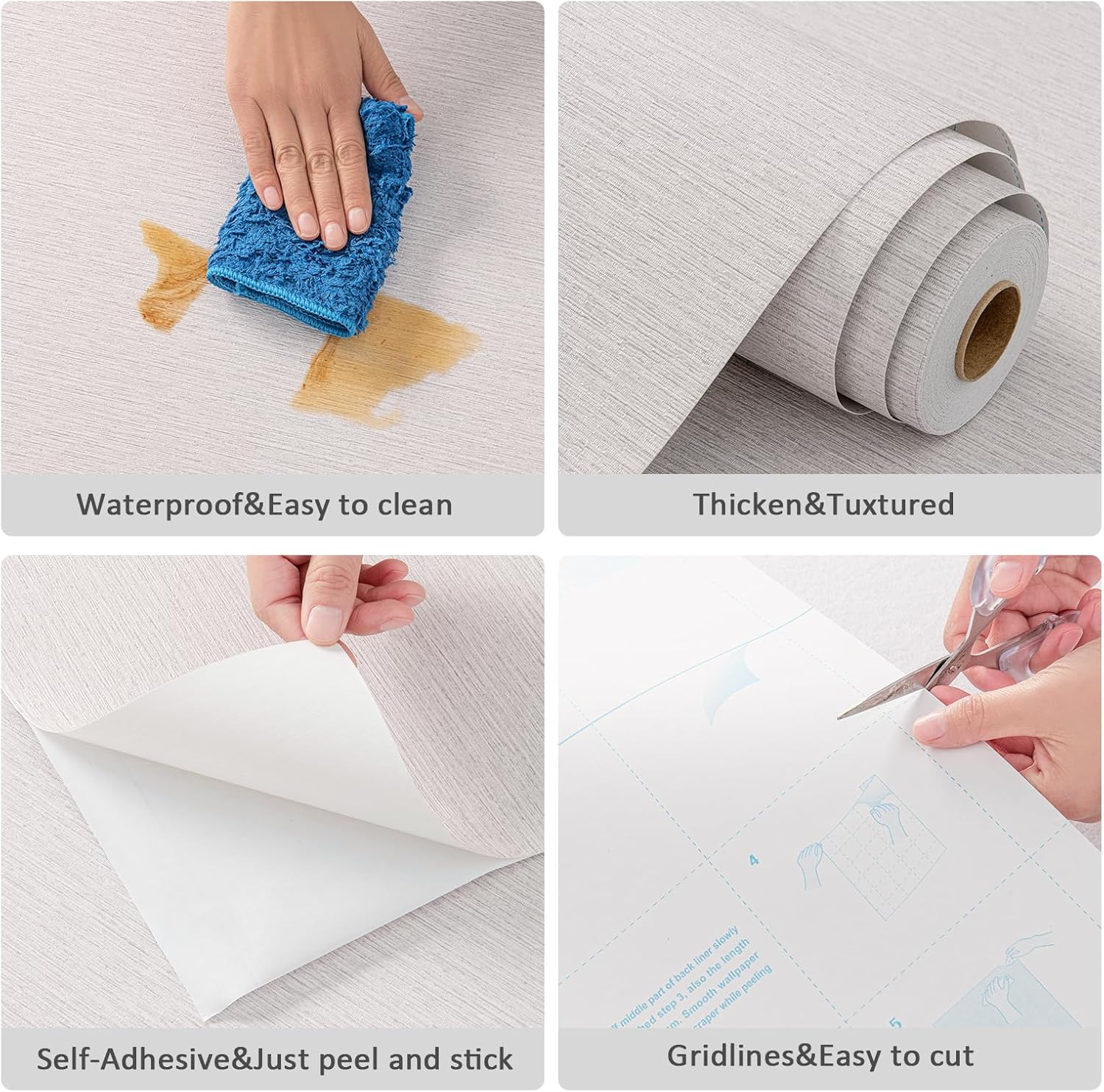 • SIZE: 1 roll = 20.8 inches wide x 32.8 feet long = 56.7 sq. ft. [Color/Pattern] The wallpaper features a soft light gray base, overlaid with organic plant fiber-textured vertical stripes and delicate horizontal lines. The pattern is rendered in subtle tonal variations, graduating from pure white to ethereal light grays. Comes with Installation instruction and LIFETIME WARRANTY .This Grasscloth removable wallpaper mimics the look and texture of authentic grasscloth, bringing timeless beauty into any space.