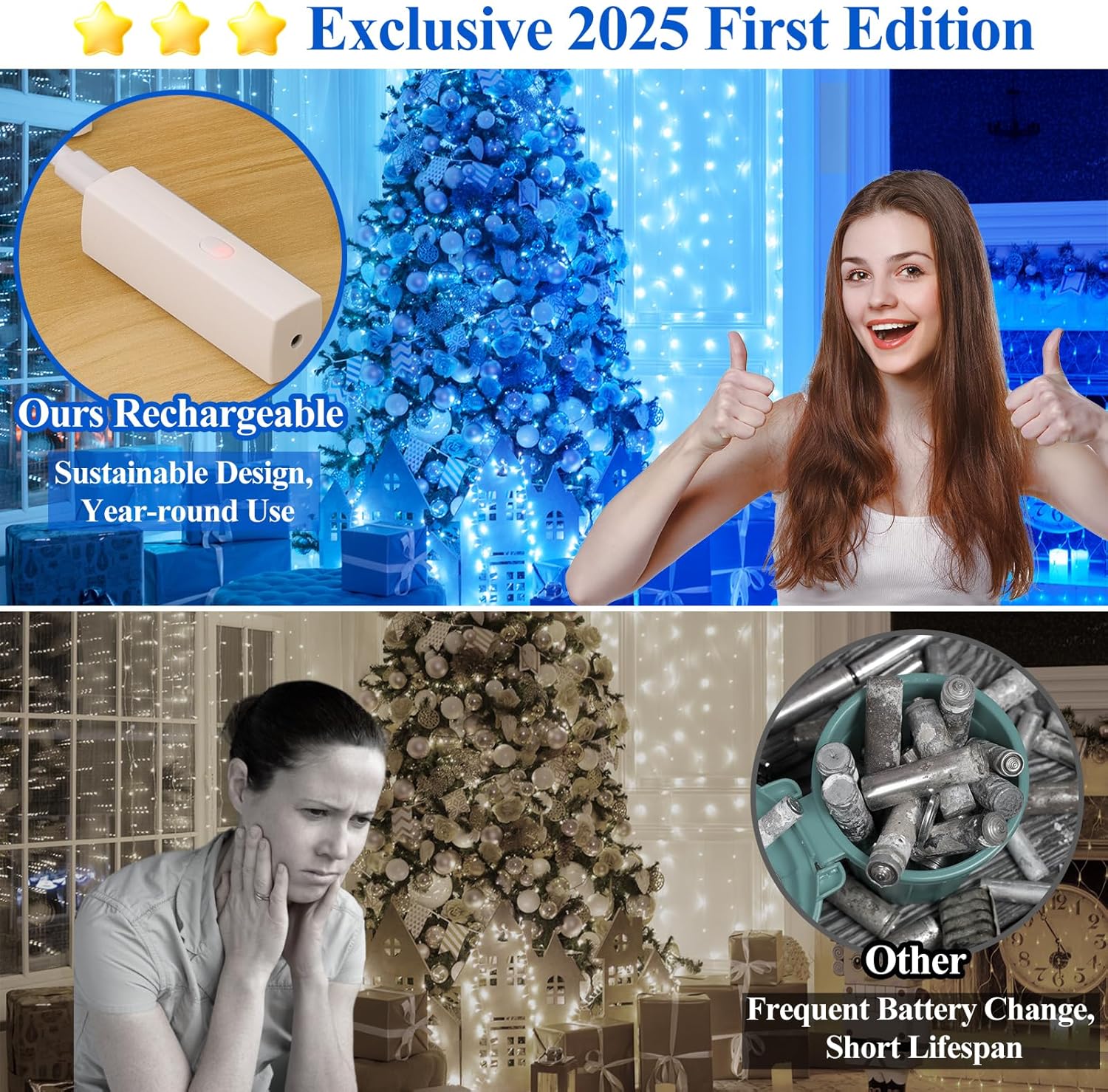 • 2025 Specially Developed Battery Operated String Lights: Say goodbye to disposable batteries and embrace sustainability! Our rechargeable Type-C power bank (cable included) powers the twinkle lights for 30+ hours of cordless glow. When it’s time to recharge, simply detach the compact, lipstick-sized power bank—no need to move the entire string lights. Designed with an innovative, patented structure, this power bank offers a smarter, greener way to shine