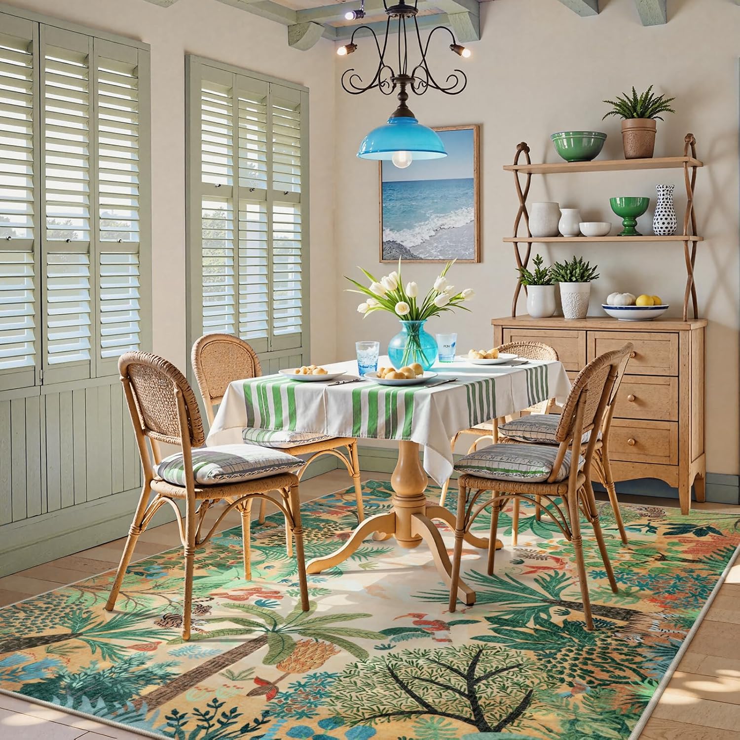 • 【Day and Night Collection】: LIVEBOX Day and Night Collection Rug captures the sky's transformation from dawn to midnight. With vibrant hues of four color, this rug brings the jungle's enchanting beauty and the sky's magical shifts into your space.