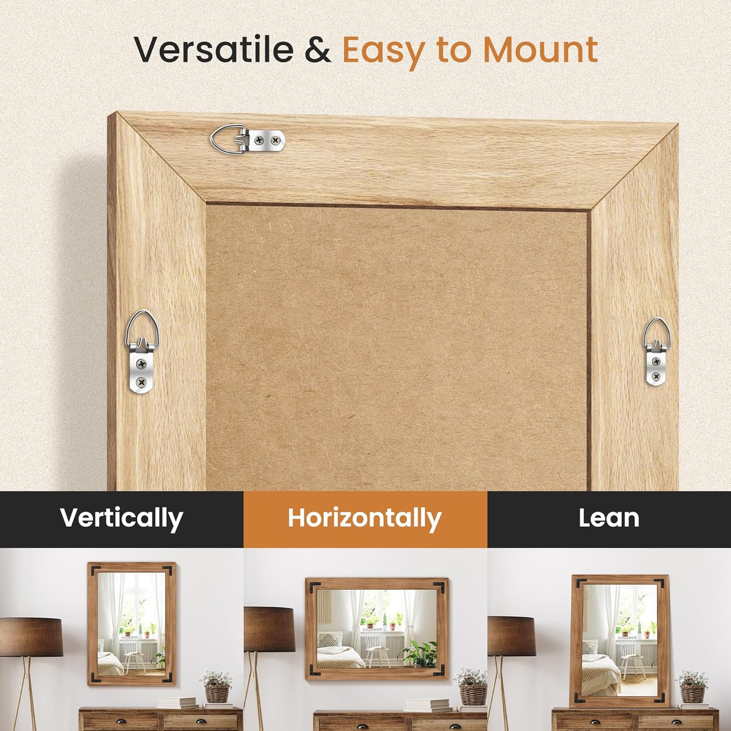 Bathroom Mirror for Wall with Wooden Frame, 20"x28" Solid Wood Vanity Mirror for Farmhouse, Bathroom, Bedroom, Vertical or Horizontal Hanging