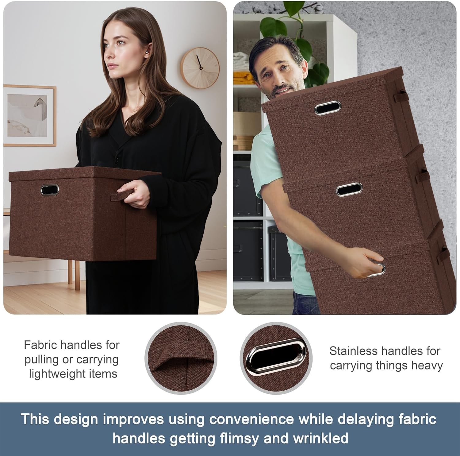 • ✅[Constant Use] Covered by thick textured cloth, our large lidded storage bins prevent daily wears and tears. They can keep dust and bugs out also, avoiding dirt and musty smell. You can use these decorative storage boxes with lids everyday or for long term storage.
