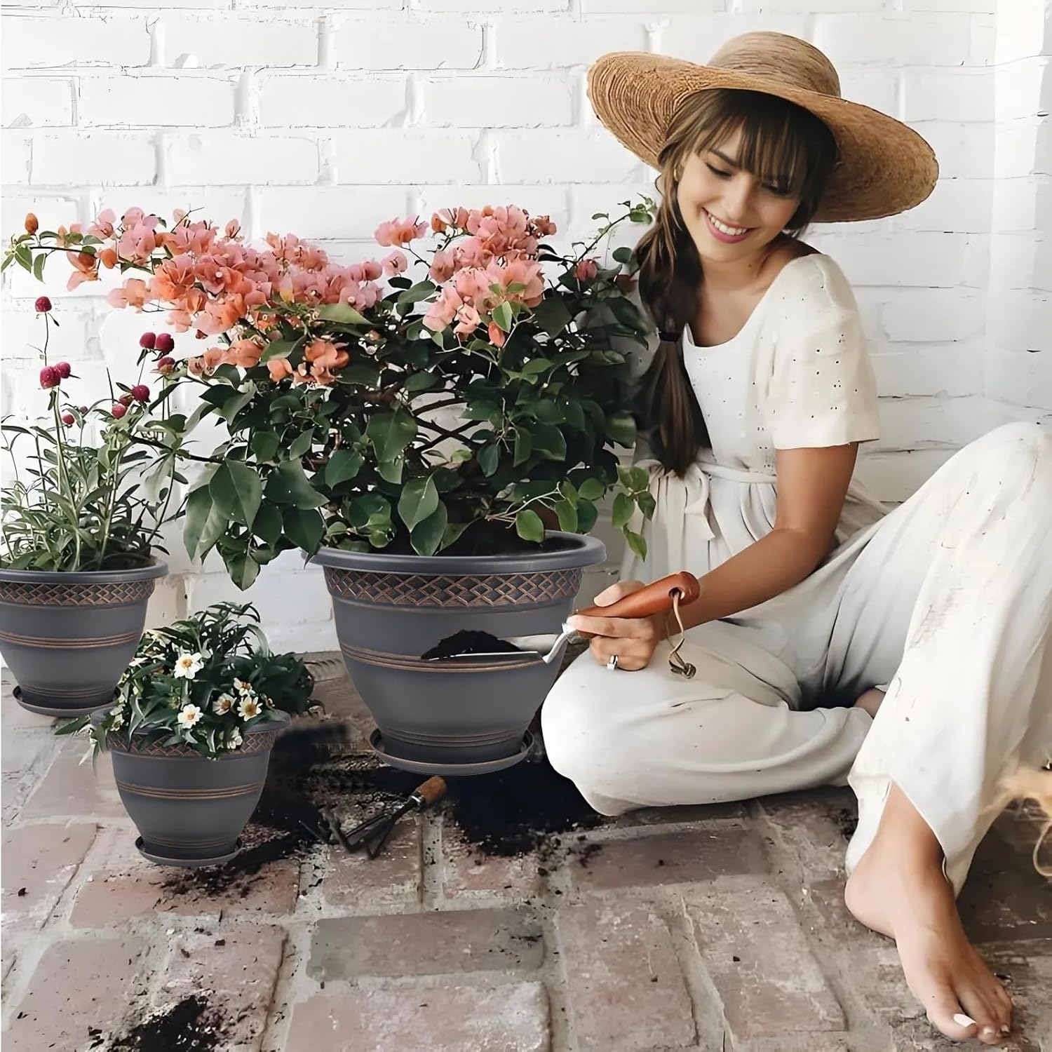 • Premium Quality Flower Pots - The plastic pots are made from premium PP plastic which are sturdy, lightweight, not color-fade and crack over time, great for your plants to grow.