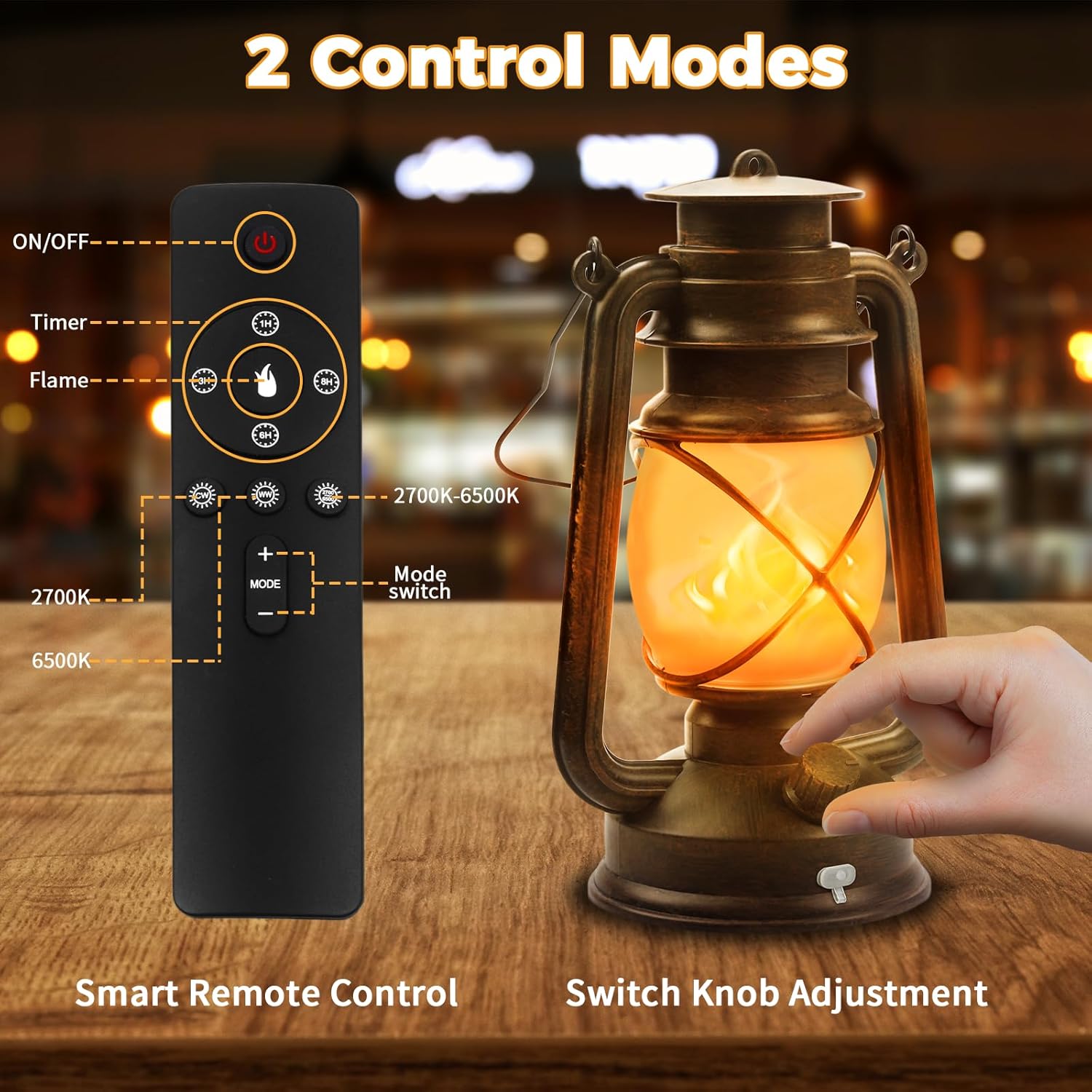 • Easy to Operate Remote Control: With the remote, you can change light patterns like steady or flickering light from afar and set timings, such as dusk-on and dawn-off. Whether the lantern's hung on the porch or in a hard-to-reach spot, it's easy for you to control, helping create a pleasant ambiance to comfortably enjoy the warm glow