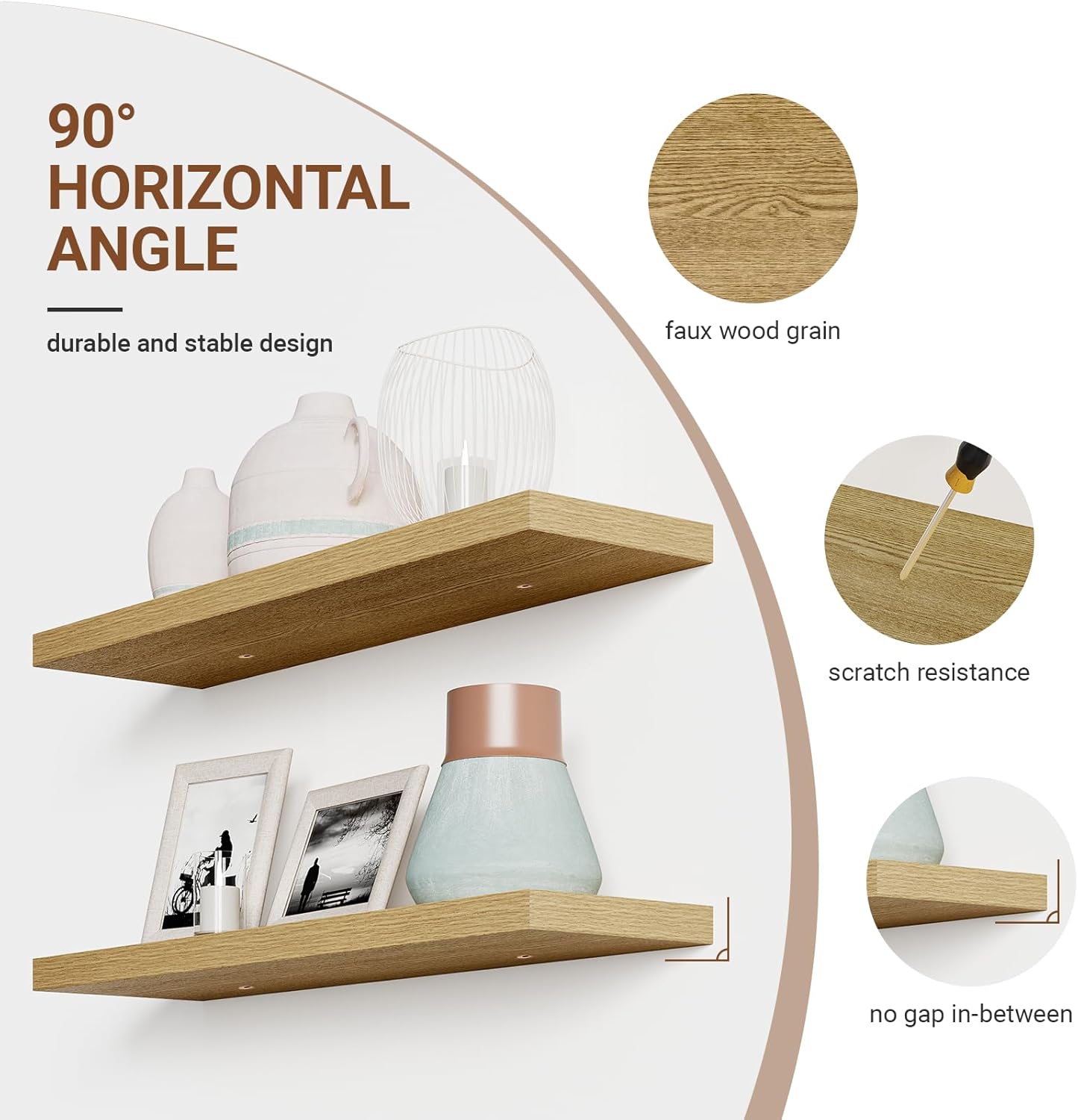 • 【Modern Rustic Look】Our 36 inch floating shelves for wall are made from durable engineered wood,which blends well with modern and rustic farmhouse wall decor alike.The white oak floating shelves is available in colors & sizes,perfect for storing books,plants,collectibles,etc..