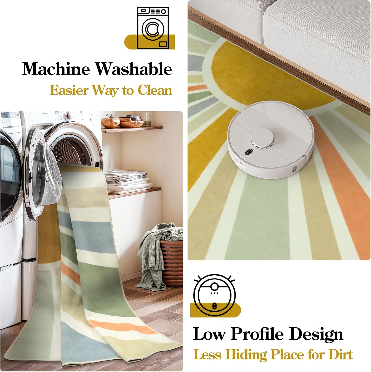 STARUIA Sun 8x10 Washable Area Rugs for Living Room, Non-Slip Backing Large Boho Rainbow Nursery kids Area Rug for Bedroom, Carpet Rug for Dining Guest Room Classroom Office Nursery Kids(Monet,8'x10')