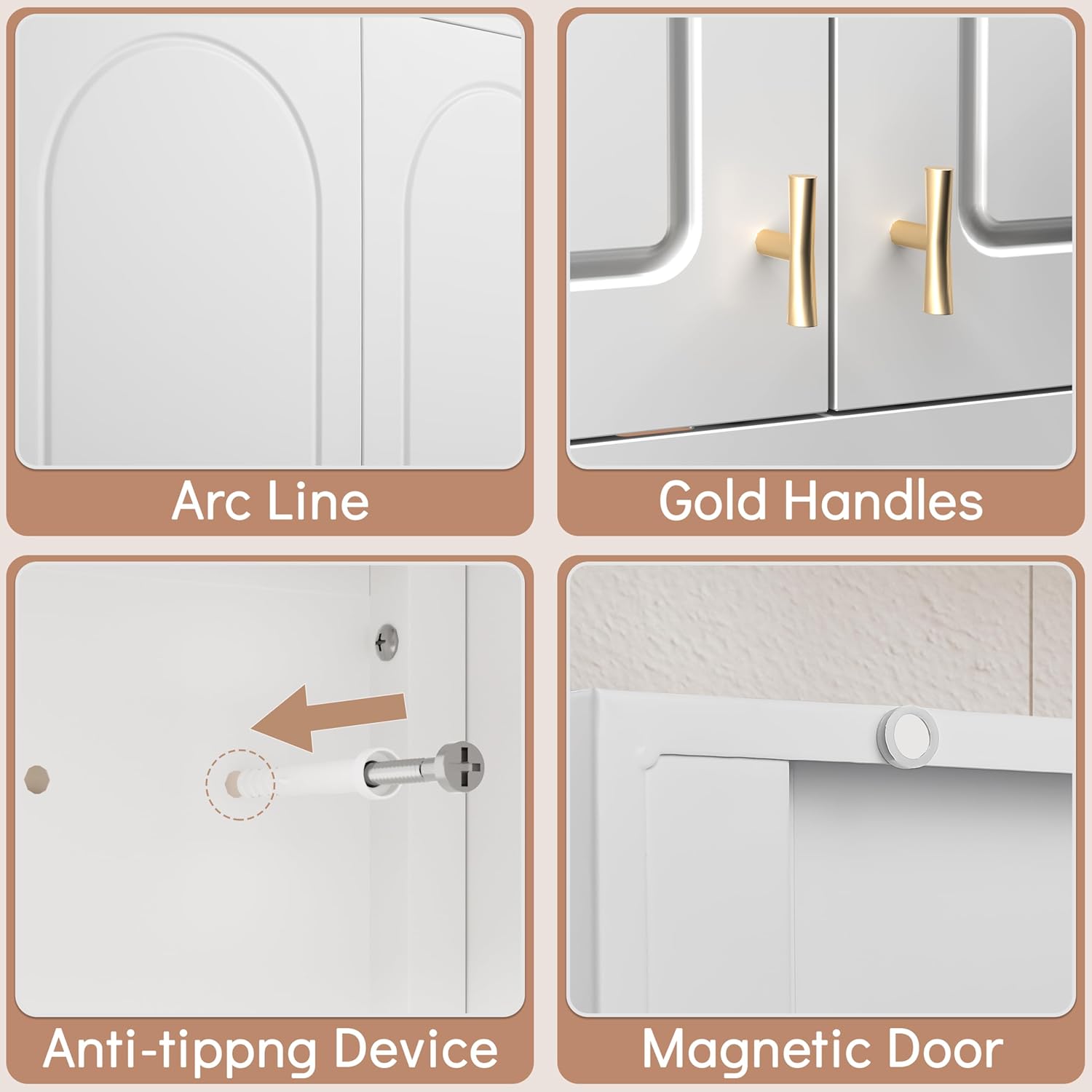 • STYLISH APPEARANCE: Simple white lines make the white storage cabinet more elegant and beautiful, and complement various decorative styles. Whether your home is modern or vintage, this white cabinet will fit together seamlessly