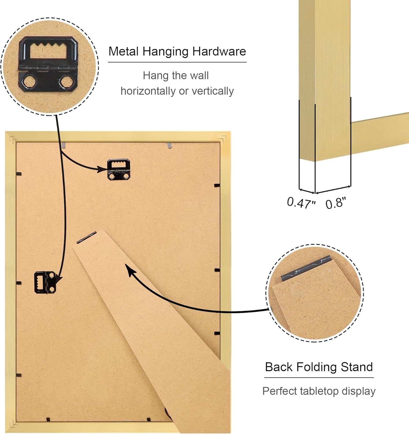 • Multiple Display:10 by 14 photo frames come with hanging hardware, which can be hung on the wall, or displayed on the tabletop through the stand
