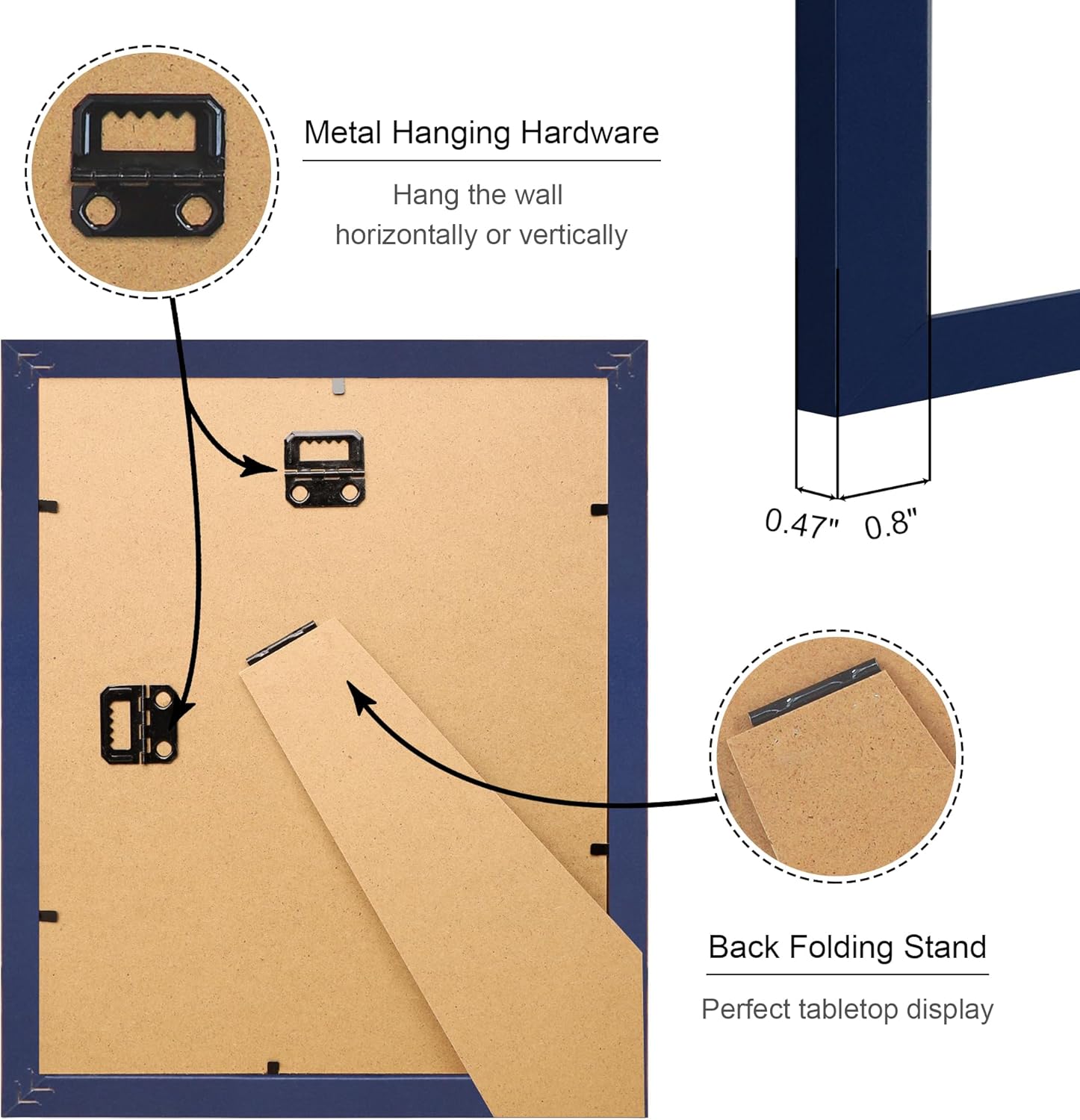 • Multiple Display:8 by 10 photo frames come with hanging hardware, which can be hung horizontally or vertically on the wall, or displayed on the tabletop through the stand