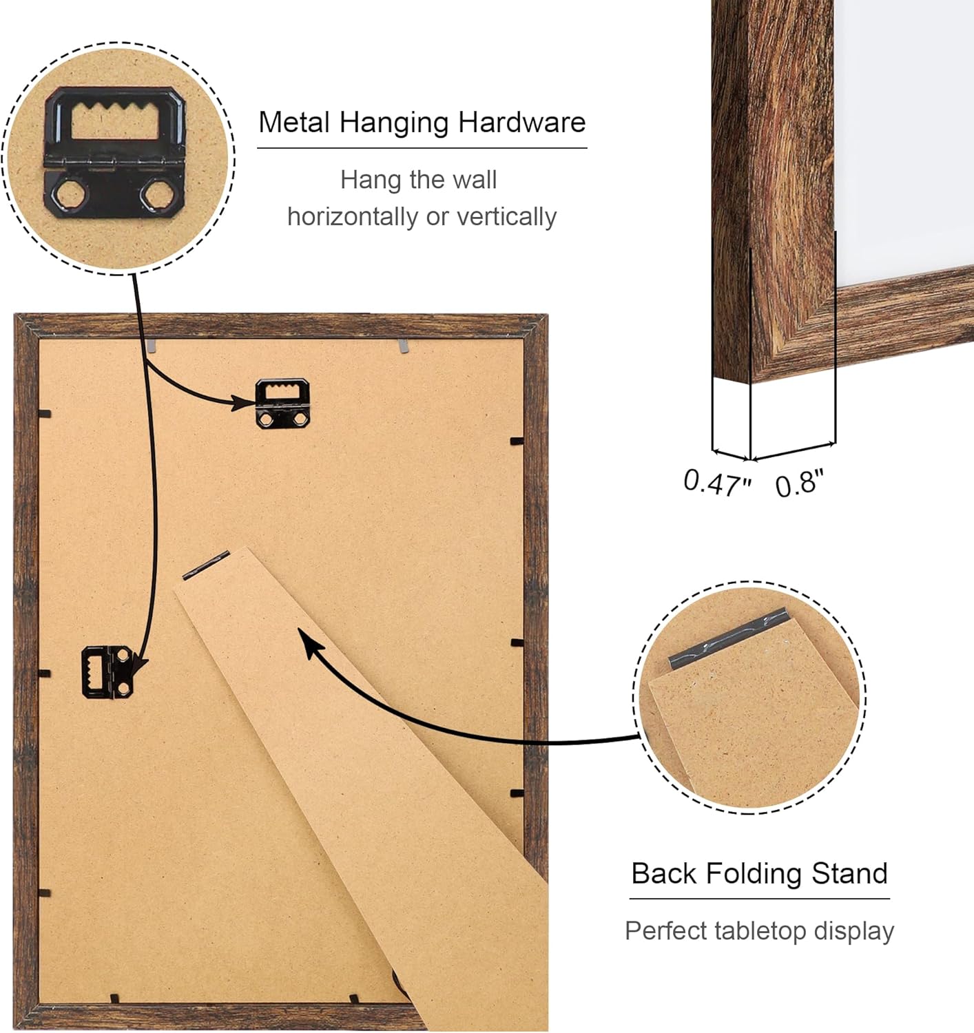 • Multiple Display:10 by 14 photo frames come with hanging hardware, which can be hung on the wall, or displayed on the tabletop through the stand