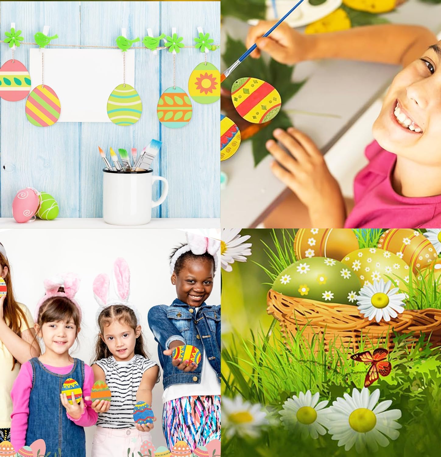 • ⬮【DIY EASTER CRAFTS】: These eggs ornament kits are suitable for DIY hand paintings, making Easter decorations, gift tags, family calendars, classroom boards, letterings, wish cards, table numbers, hangers, embellishments, coasters, backdrop decorations, photo props, and many others art and Easter craft for kids projects