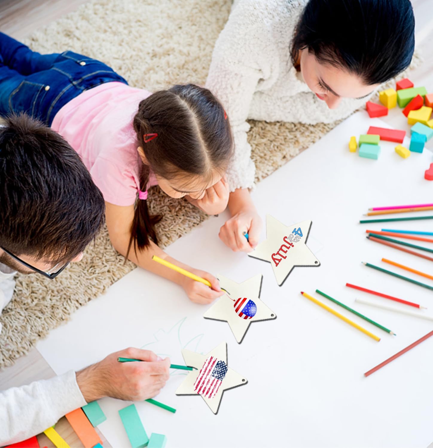 • ★【PREMIUN QUALIT】: The 4" wood stars for crafts are made of premium quality natural wood, laser-cut, and polished. All are sanded to a smooth finish ready to paint, write, decorate, or simply leave plain. It is safe for kids as an environmentally friendly 4th of July crafts/Christmas gift and Suitable for Memorial Day and other patriotic holiday decorations