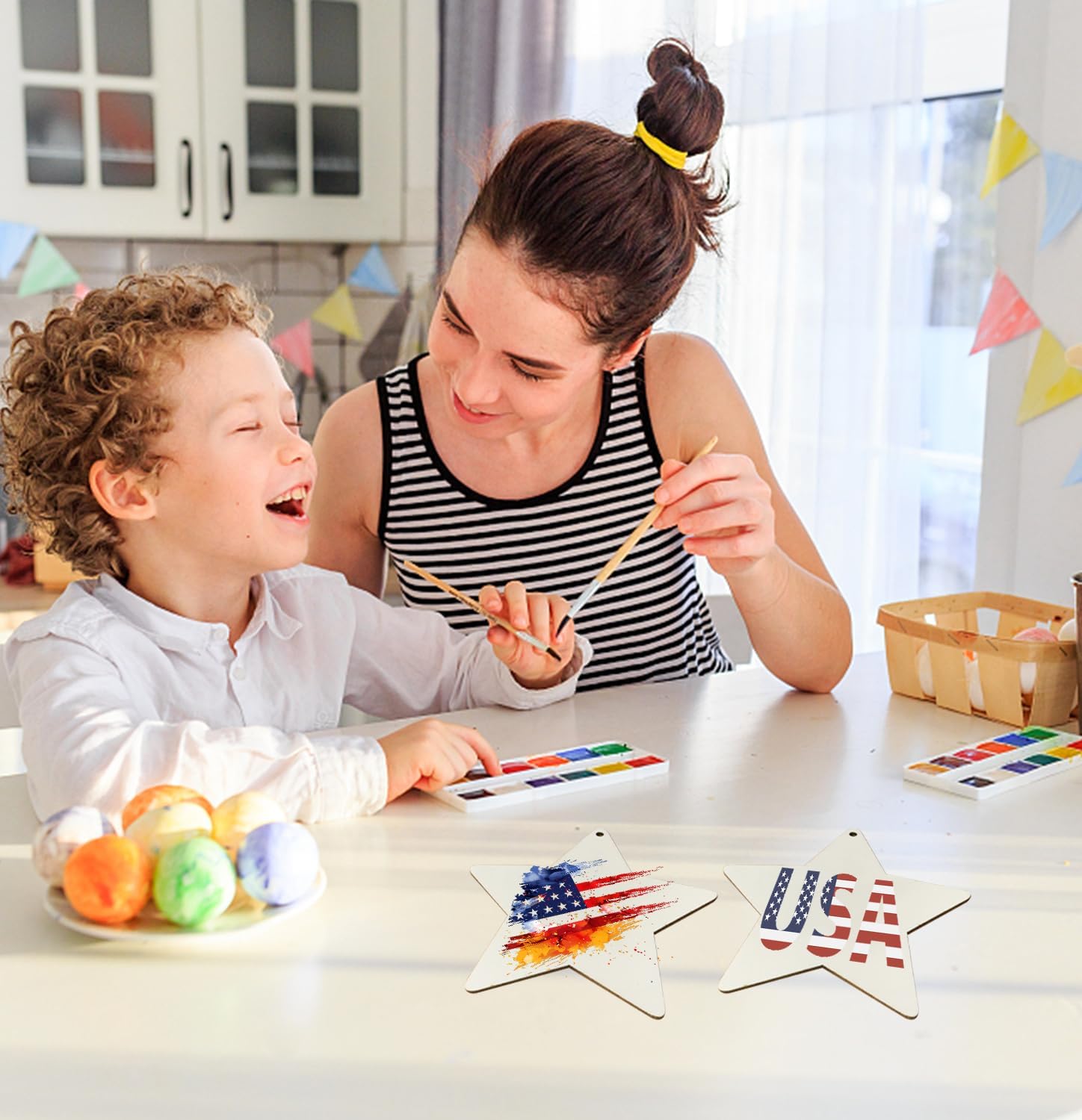 • ★【WIDE APPLICATION】:Our rustic wooden ornaments will provide you with delight and comfort. Traditional Holiday with interesting DIY Crafts indicate a festival way to add visual interest to the seasonal scene and vibrant colors enliven Christmas/Anniversaries/Weddings/Special Day decoration. Perfect for crafting unique wooden stars ornaments, making Independence Day crafts, and creating cherished memories
