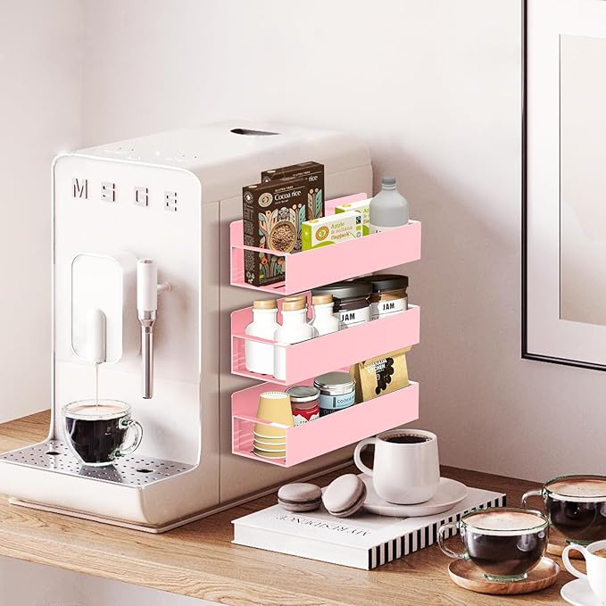 Magnetic Spice Rack Organizer for Fridge Seasoning Organizer for Kitchen Storage With Screw Magnetic Shelf for Oven, RV,Garage,Bathroom (Pink, 4pack)